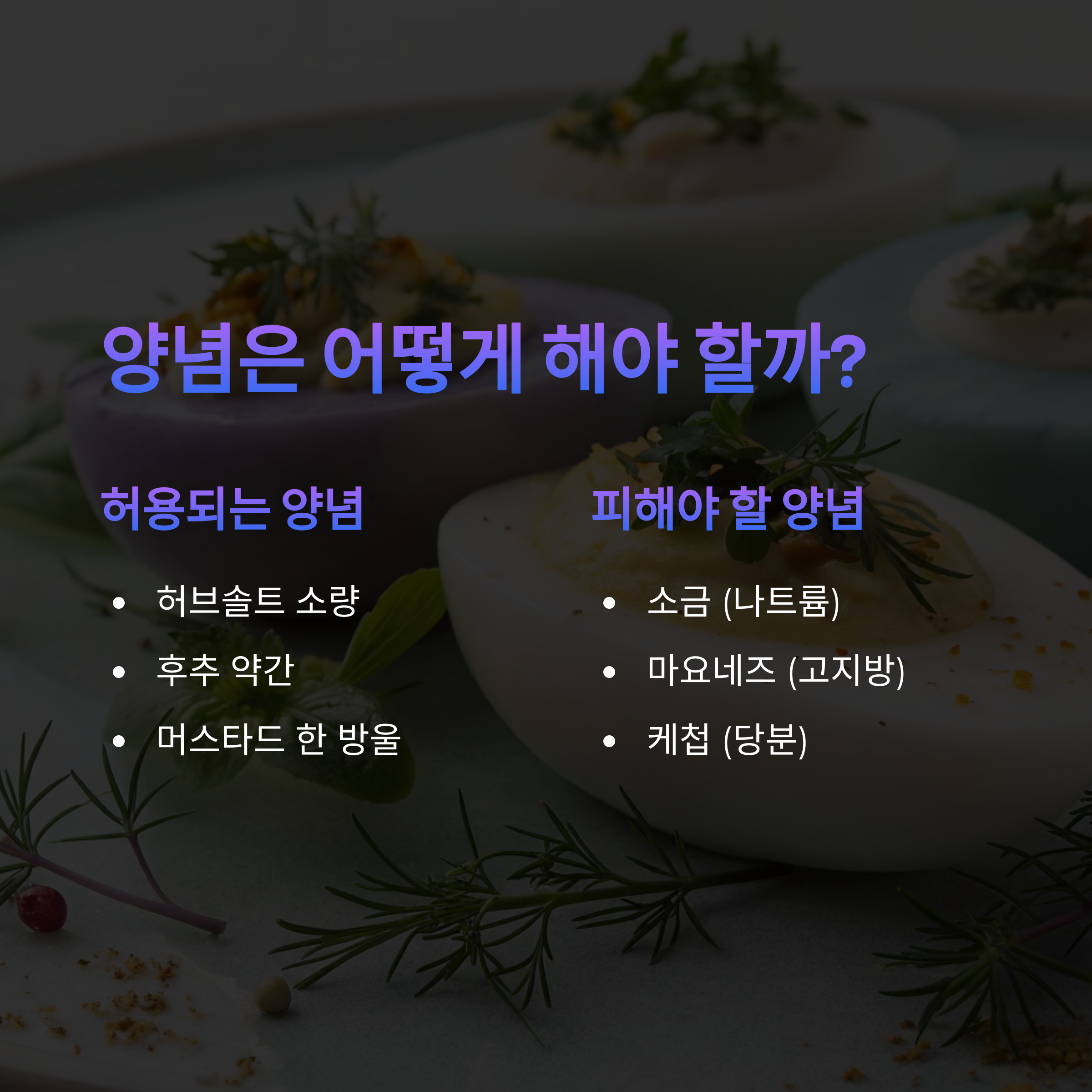 양념 없이 먹기 지겹다면 약간의 허브솔트나 후추, 머스타드 소스 한 방울 정도는 허용 범위입니다.