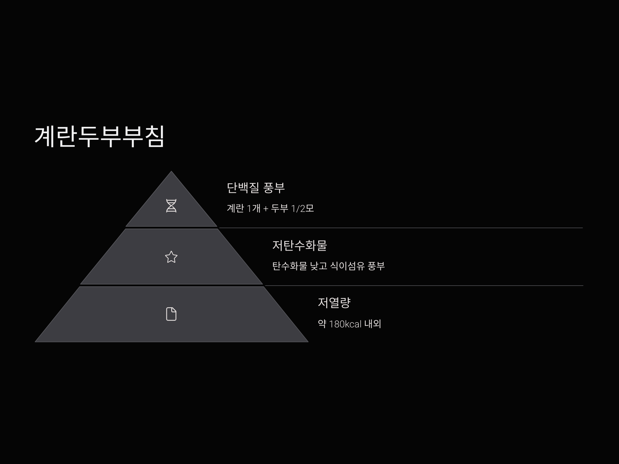 삶은 계란 1~2개 | 단백질 중심, 150kcal이하 유지 |