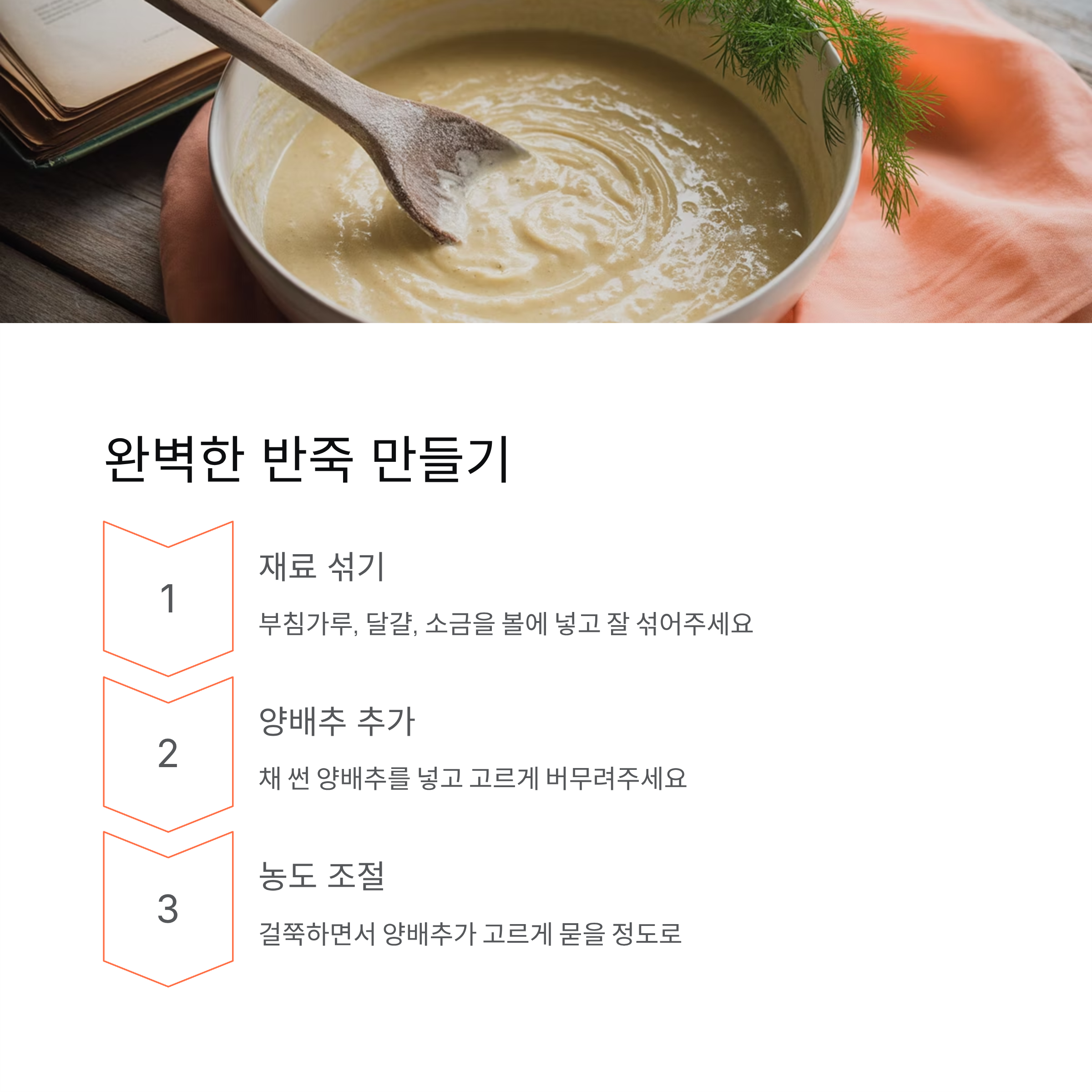반죽의 농도는 걸쭉하면서도 양배추가 고르게 묻을 정도가 이상적입니다.