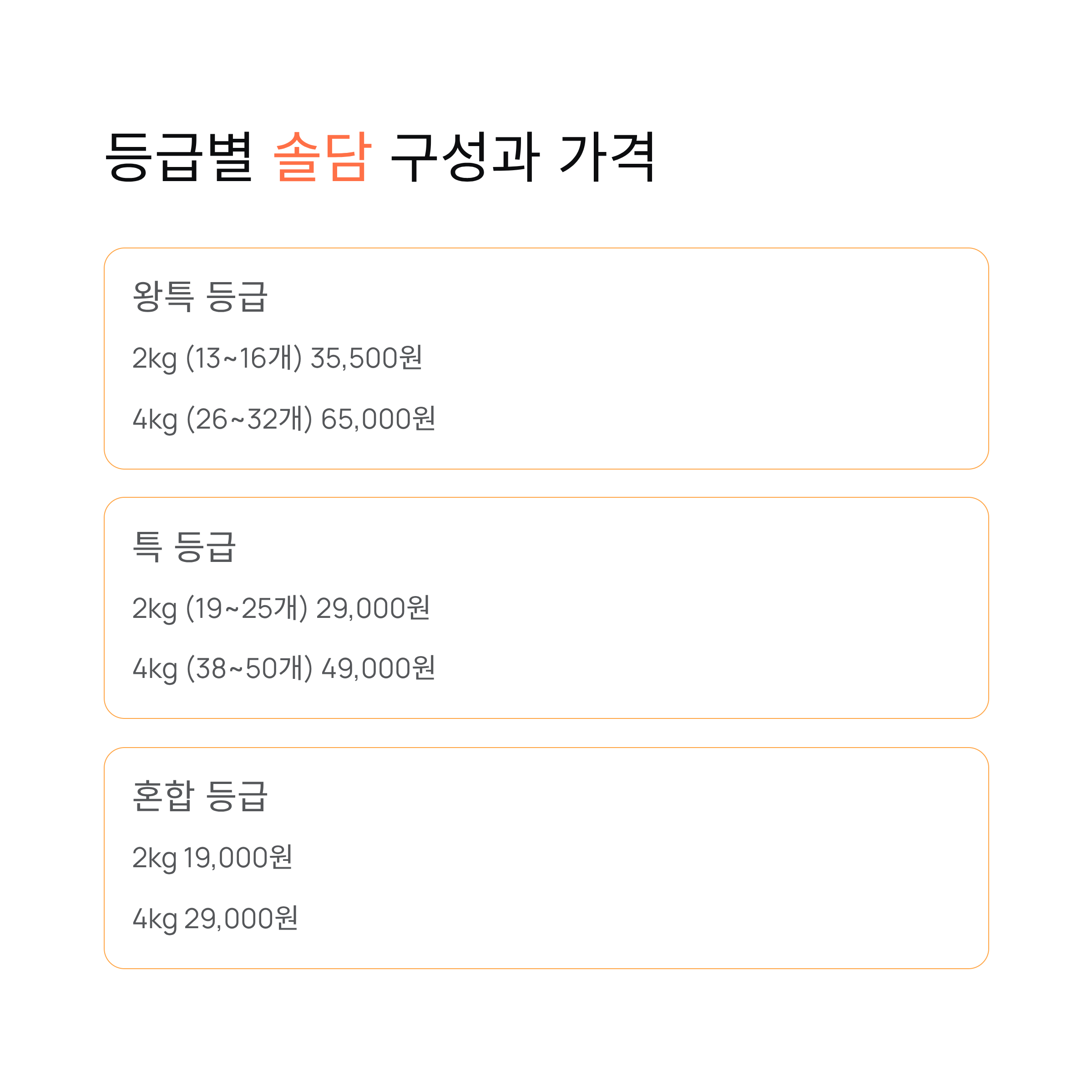 혼합 등급은 상급과 보통급이 함께 들어 있어 합리적인 가격에 솔담을 즐길