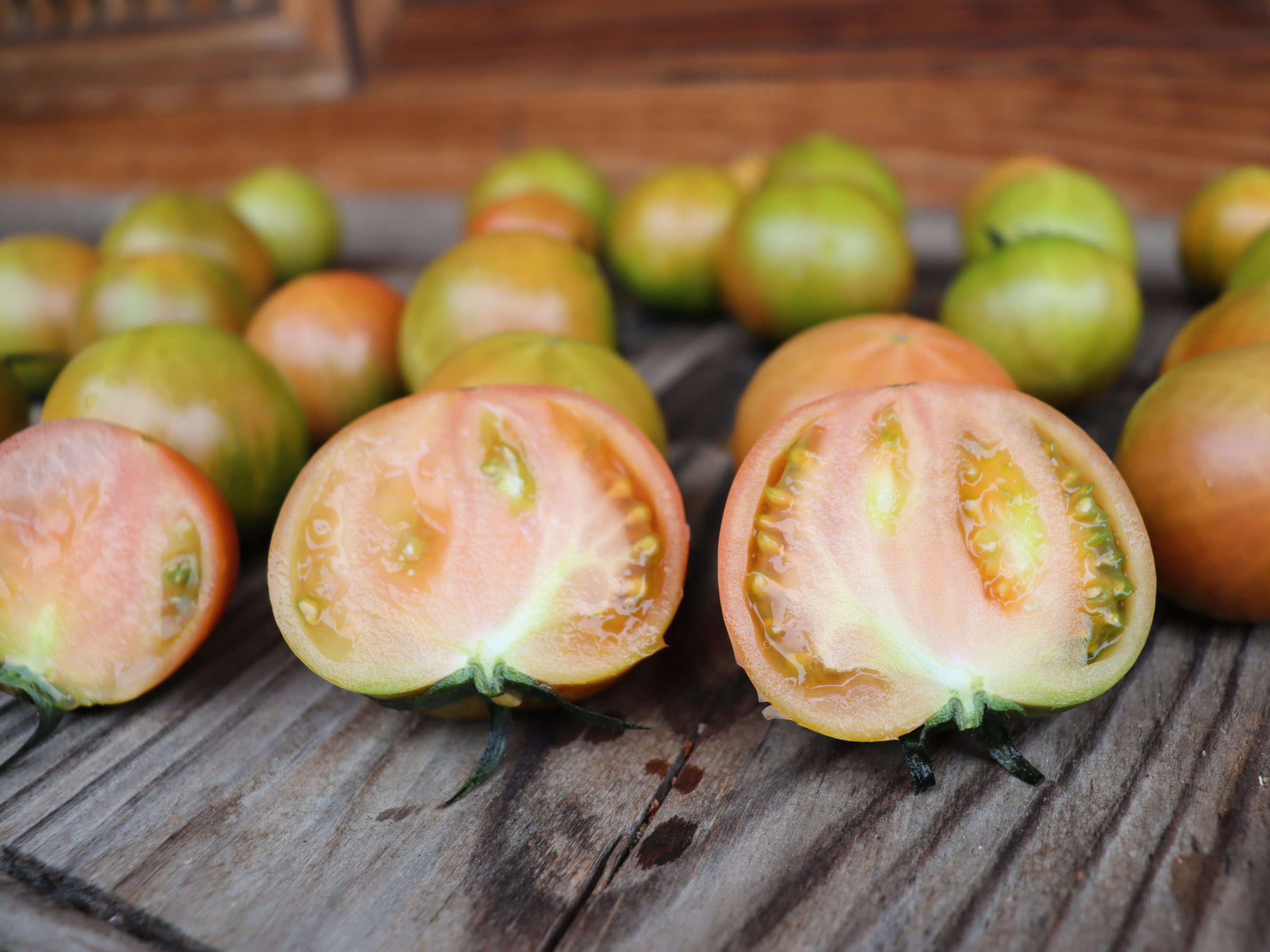- 겉모양: 초록빛과 붉은빛이 혼합된 색상 (일명 "단풍 토마토")