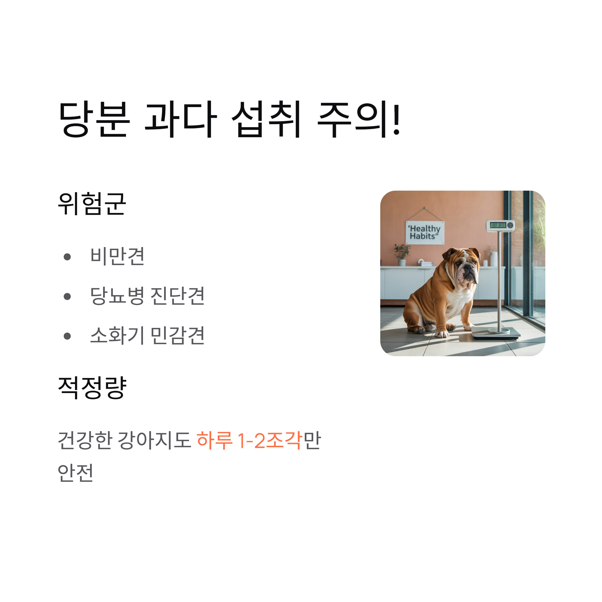 건강한 강아지라 하더라도 하루 한두 조각 정도만 주는 것이 안전합니다.