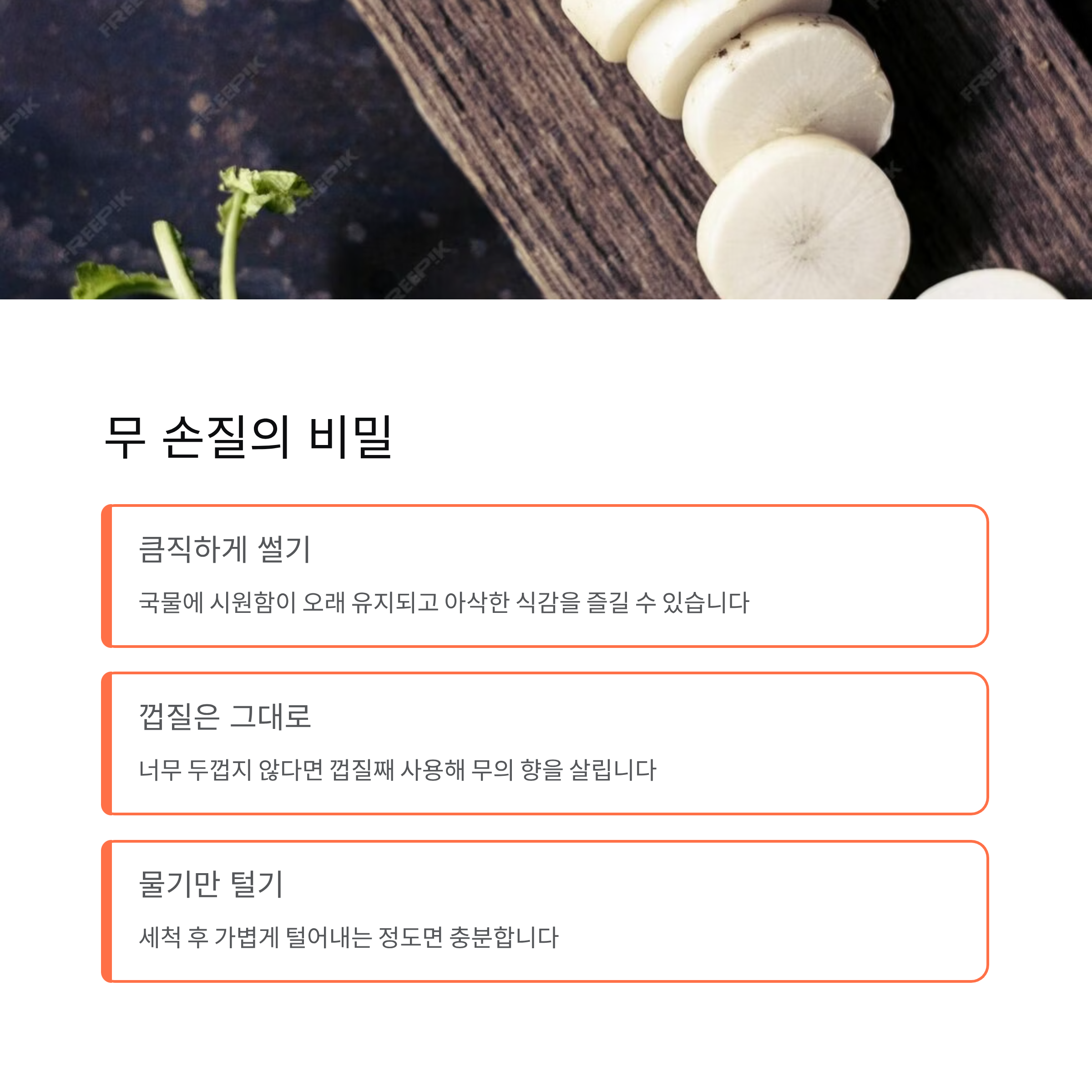무 손질은 단순하게 준비하는 것이 오히려 좋습니다