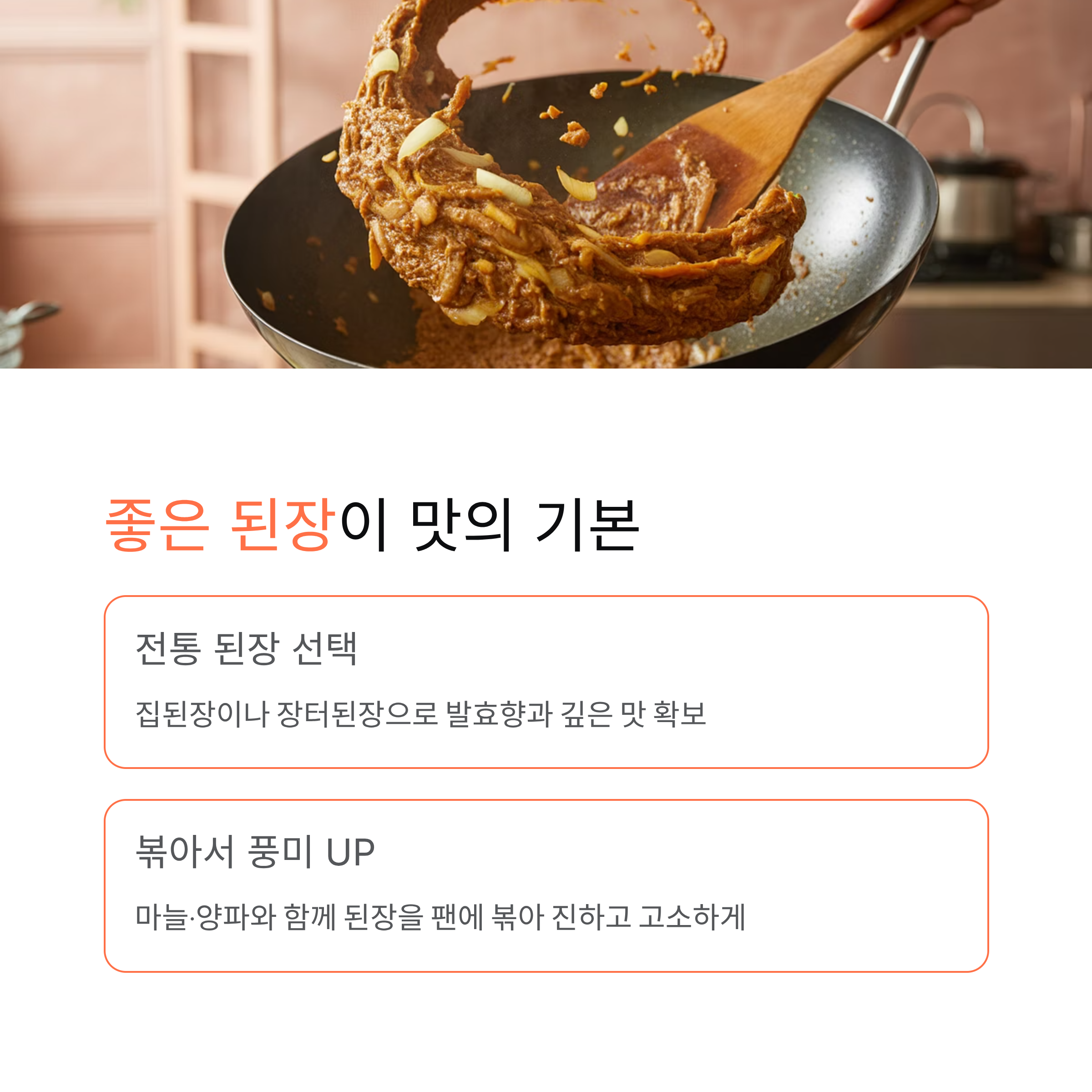 된장을 풀 때는 국물에 그냥 넣지 말고, 먼저 팬에 마늘·양파와 함께 볶아내면 훨씬 더 진하고 고소한 맛을 낼 수 있습니다.