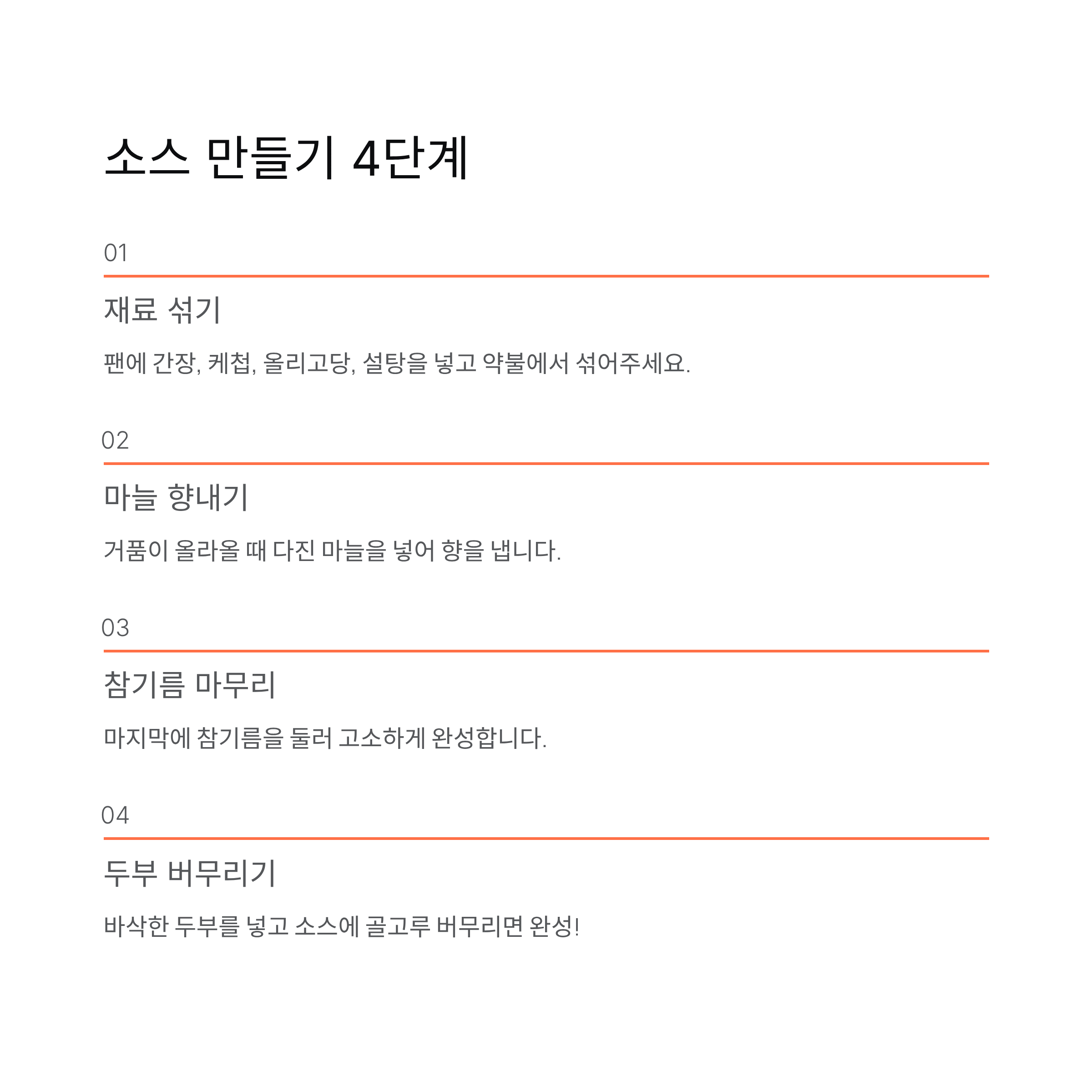 - 바삭하게 튀기거나 구운 두부를 넣고 소스에 버무리면 완성.