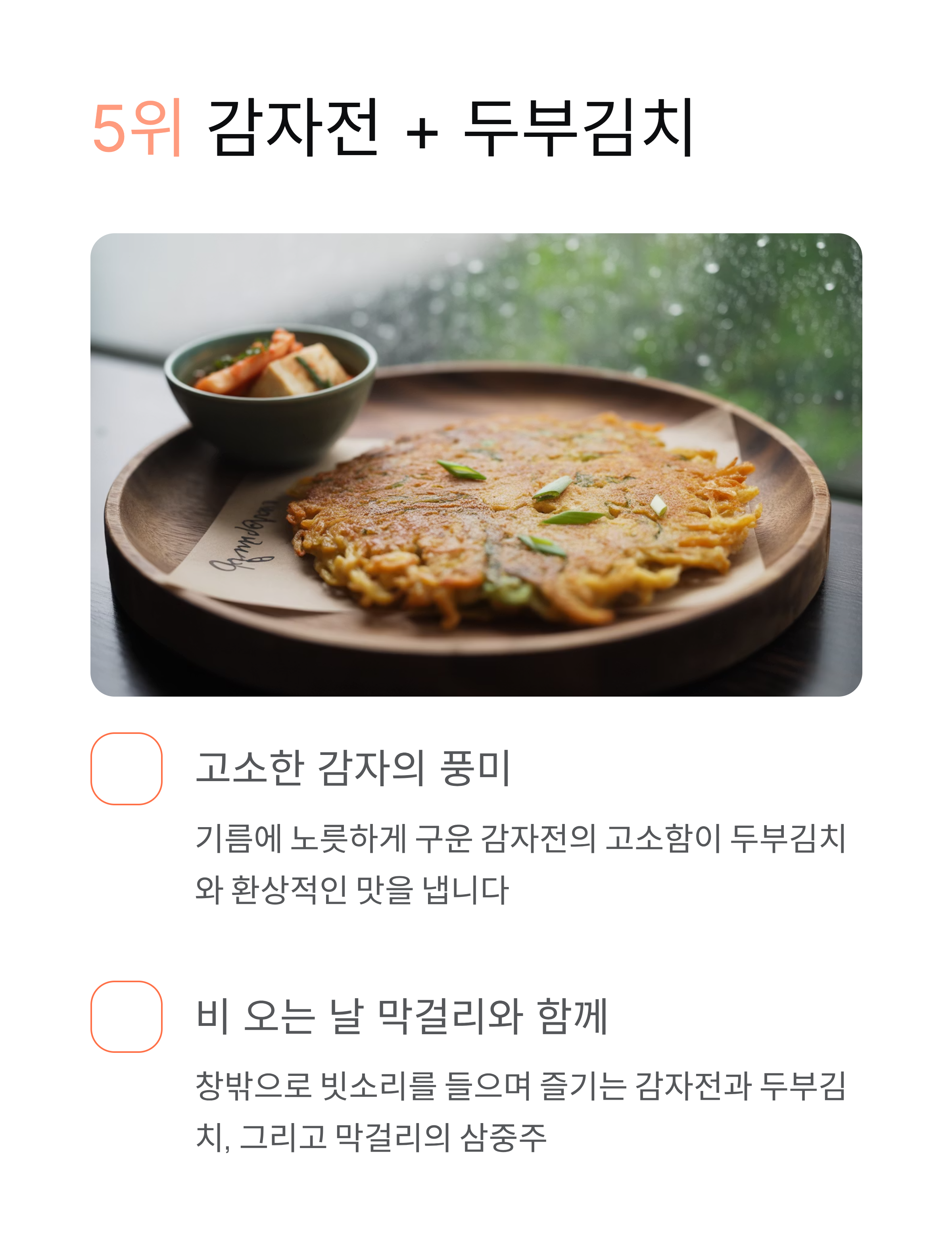 | 5위 | 감자전 | 막걸리 |