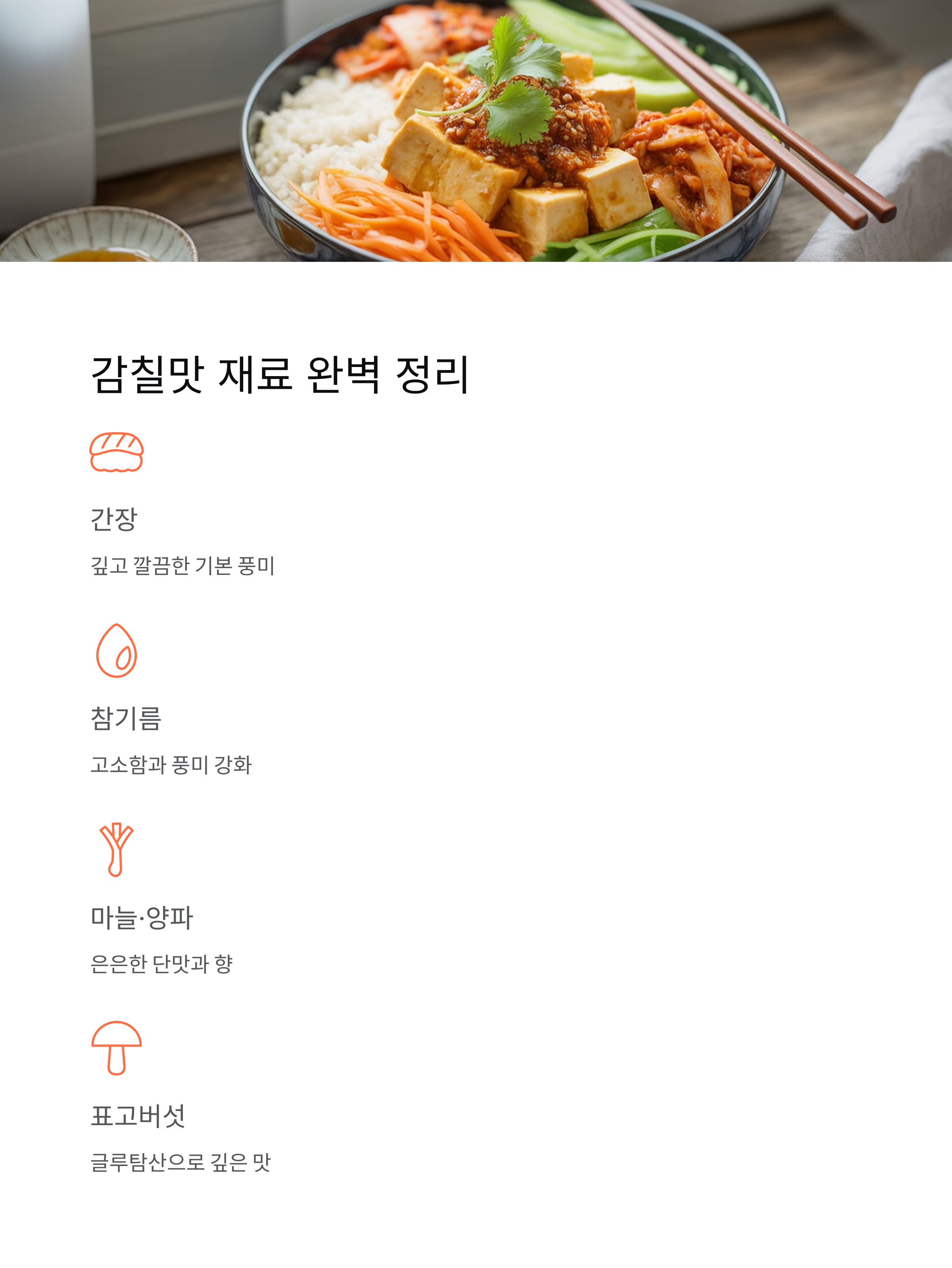 | 간장 | 깊고 깔끔한 기본 풍미 |
