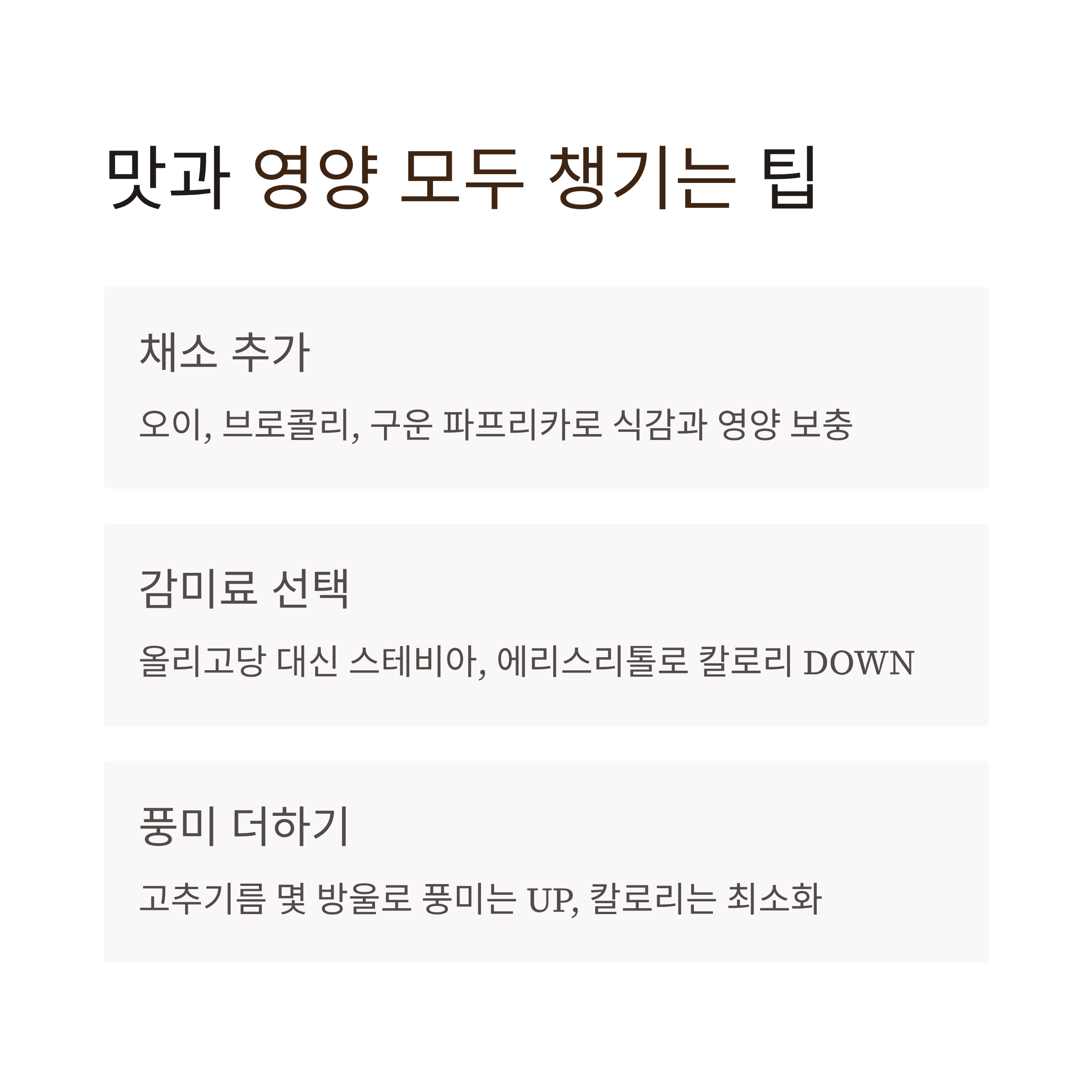 핵심 포인트 – 칼로리는 낮추고, 맛은 살리고