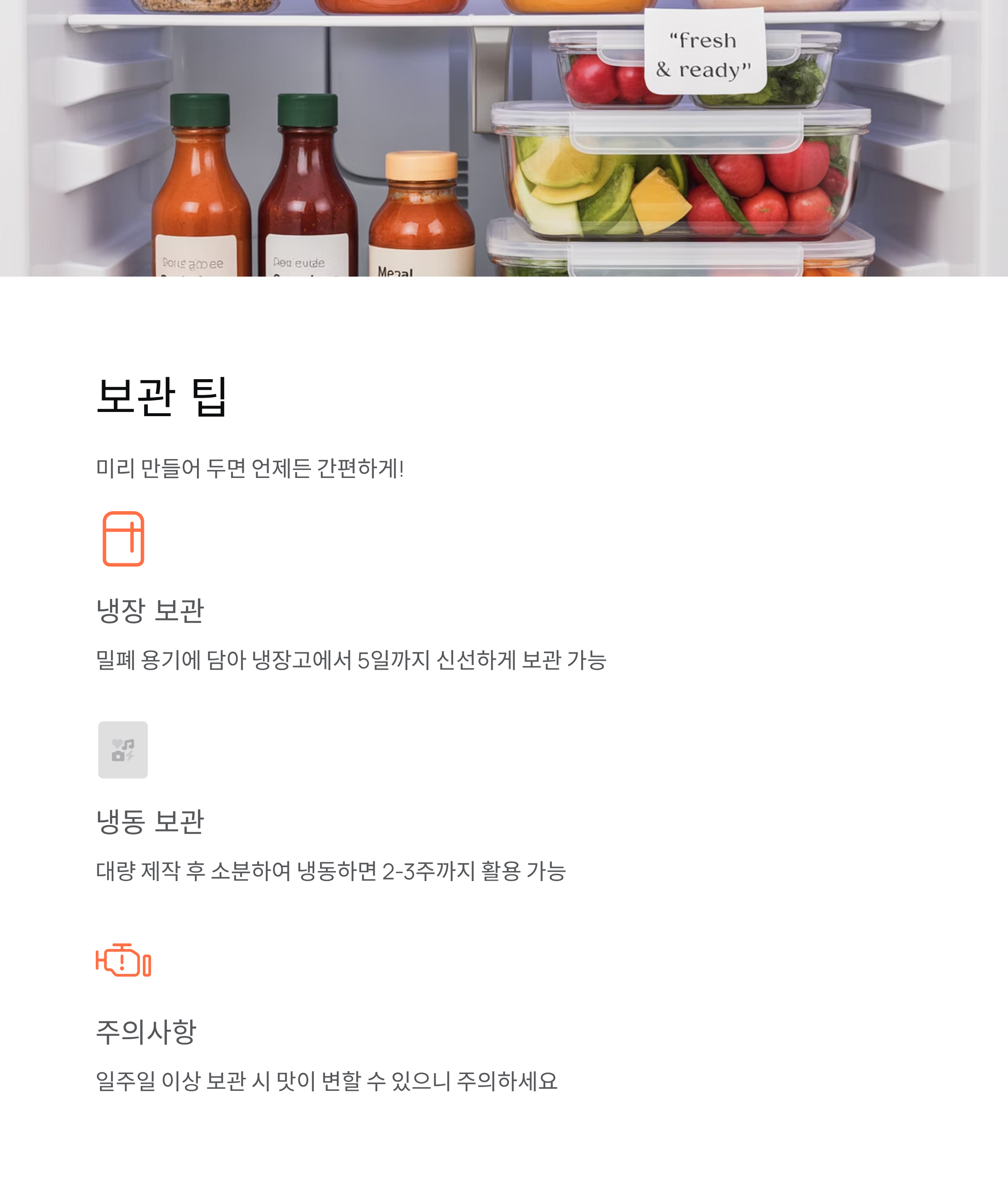 • 대량으로 만들어 소분 후 냉동 보관하면 2~3주까지도 활용할 수 있습니다.
