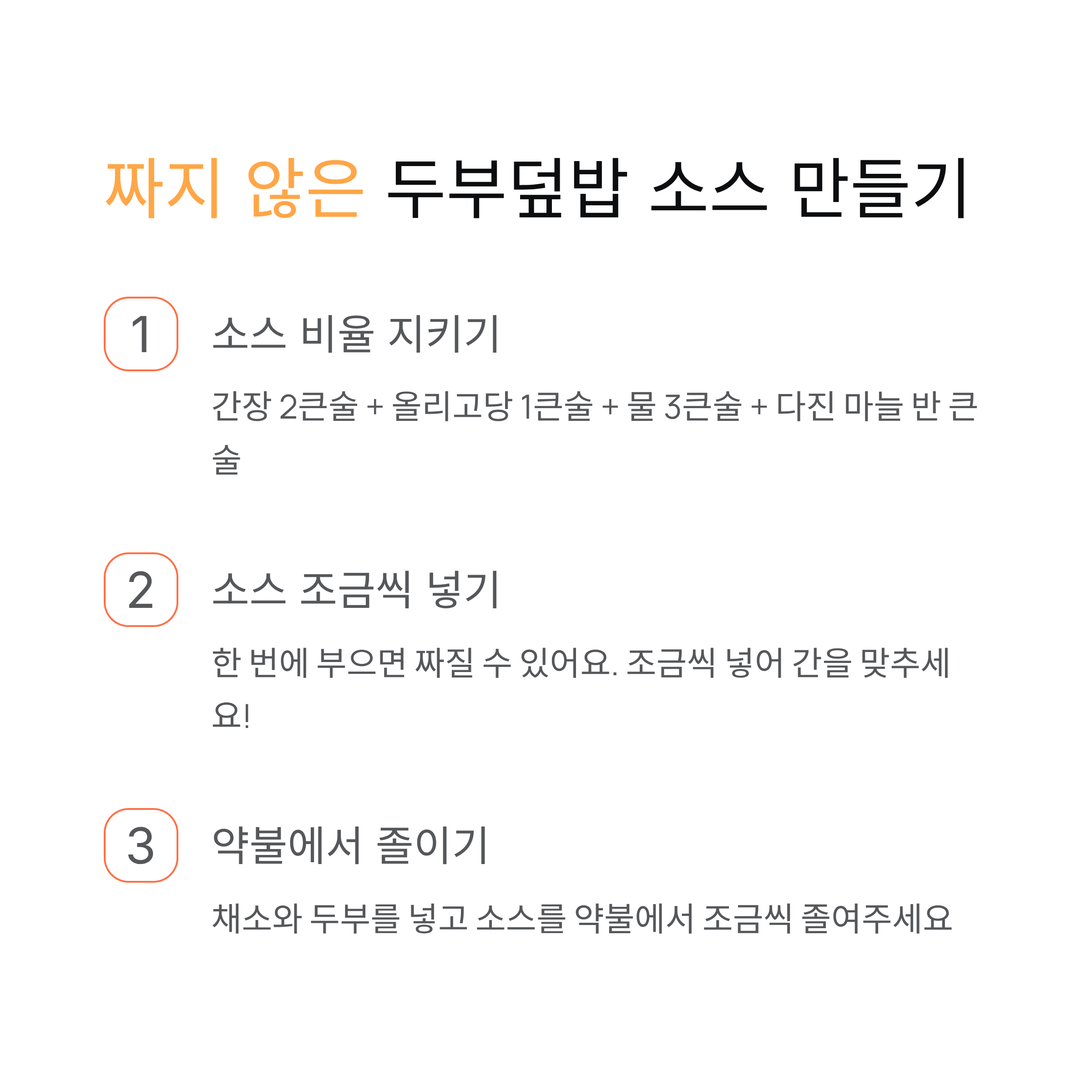 짜지 않으면서 감칠맛 있는 덮밥 소스를 완성할 수 있습니다.