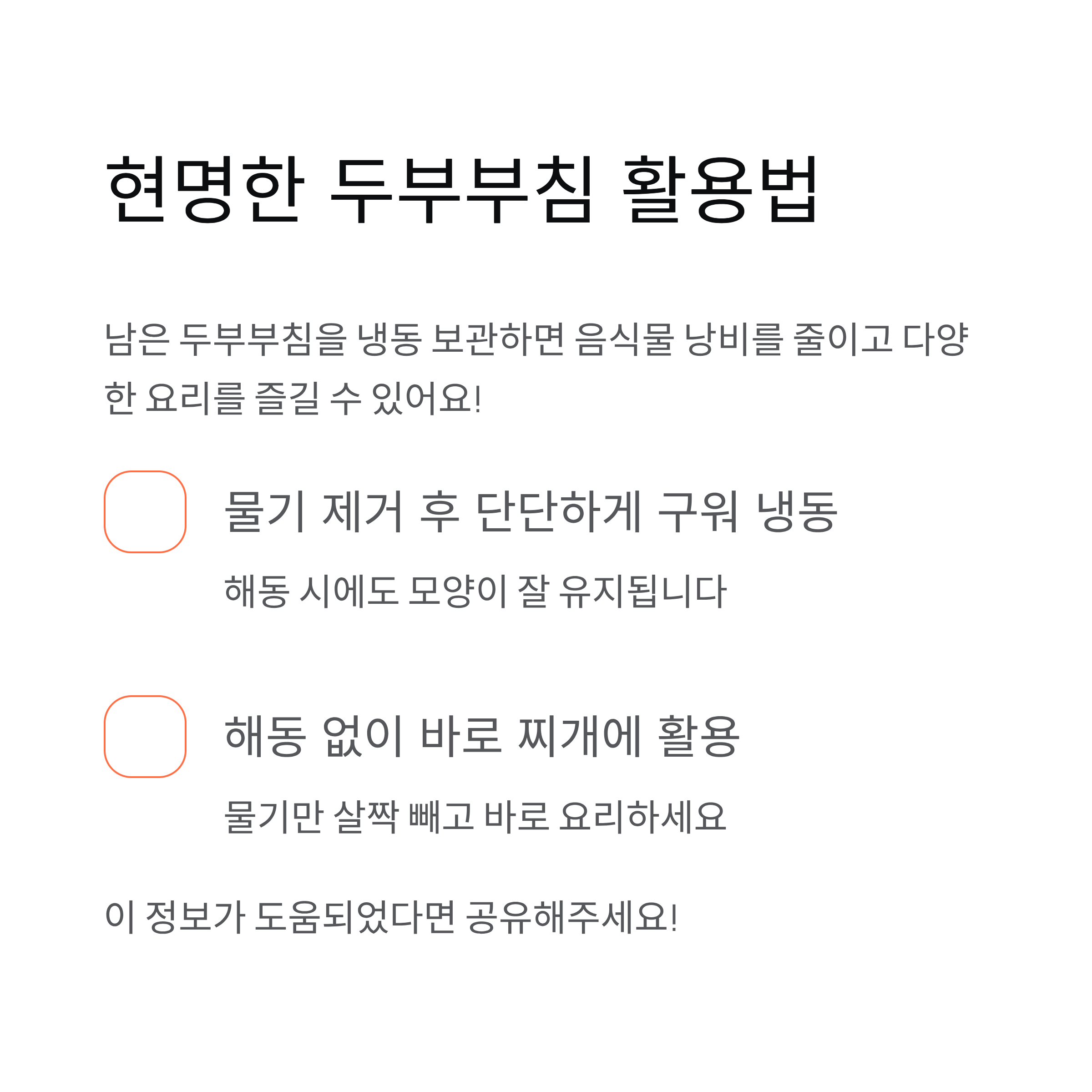 두부부침 냉동 보관 방법