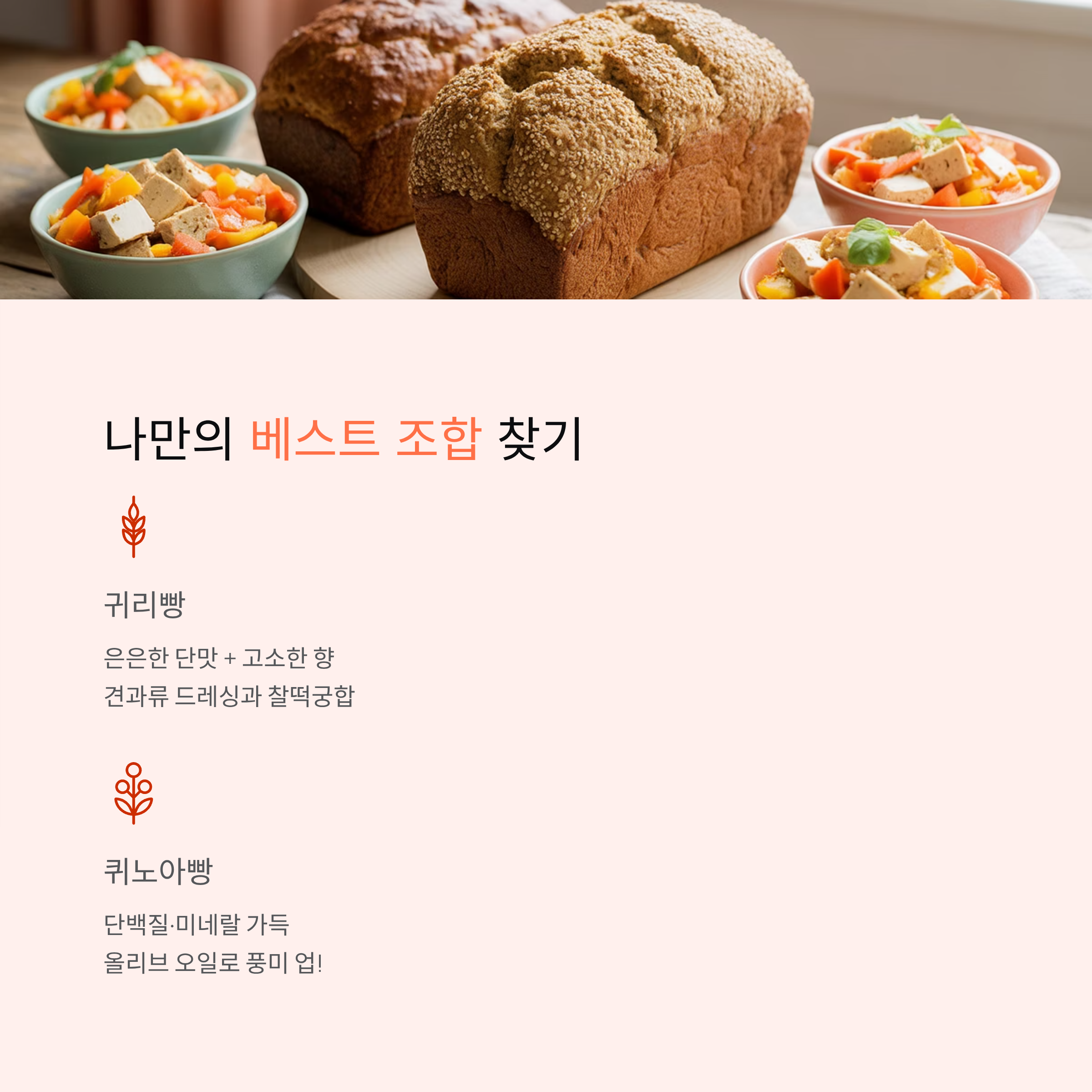 | 퀴노아빵 | 단백질·미네랄 풍부, 영양 균형 |
