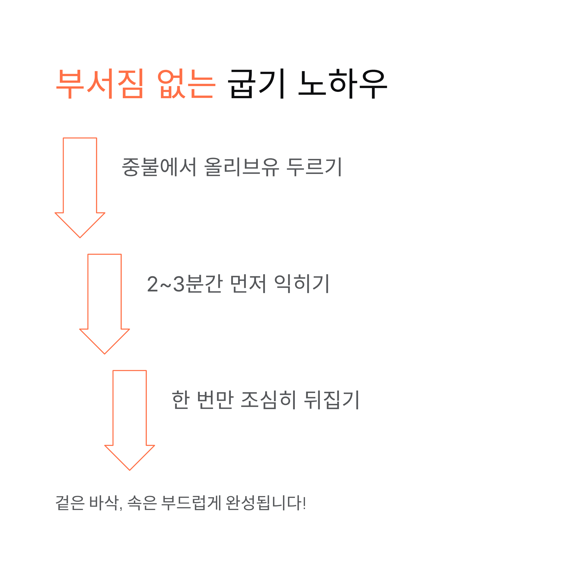 물기 제거, 단단한 반죽, 중불에서 천천히 굽기만 지켜도 훨씬 완성도 높은 요리가 됩니다.