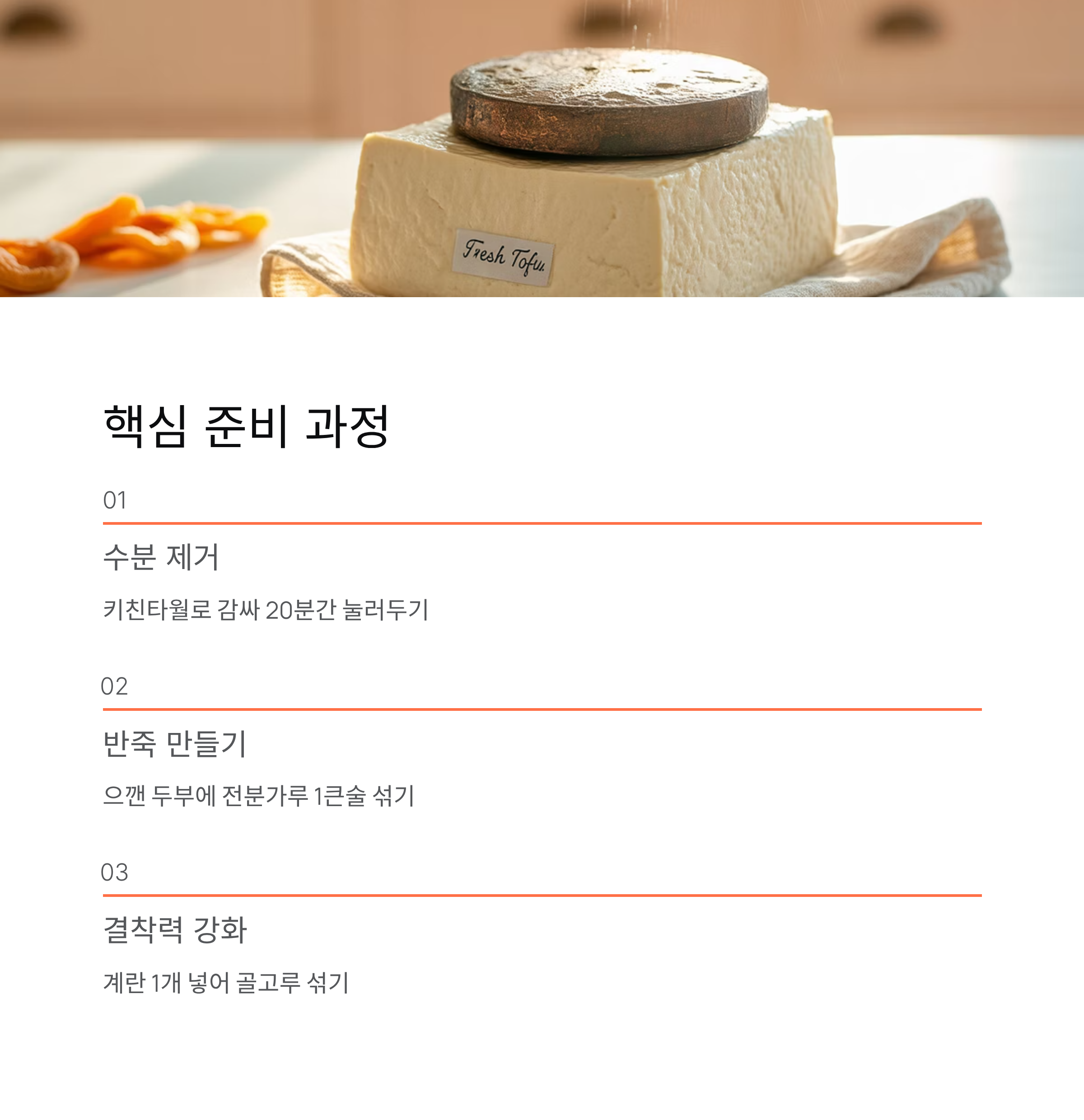 두부스테이크가 부서지는 이유는 대부분 수분과 결착력 부족 때문입니다.