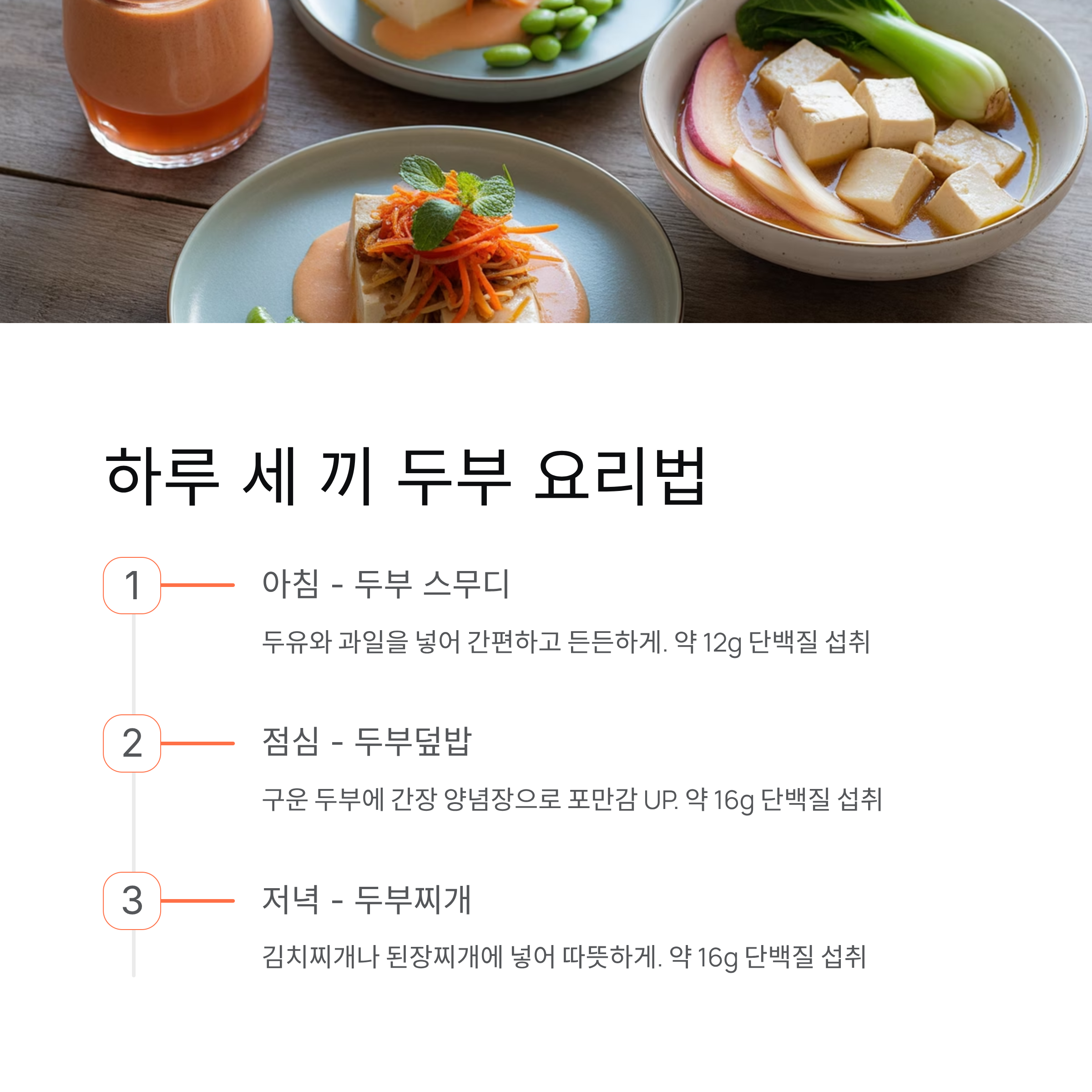 오늘은 두부 요리로 하루 단백질을 채우는 방법을 소개합니다.