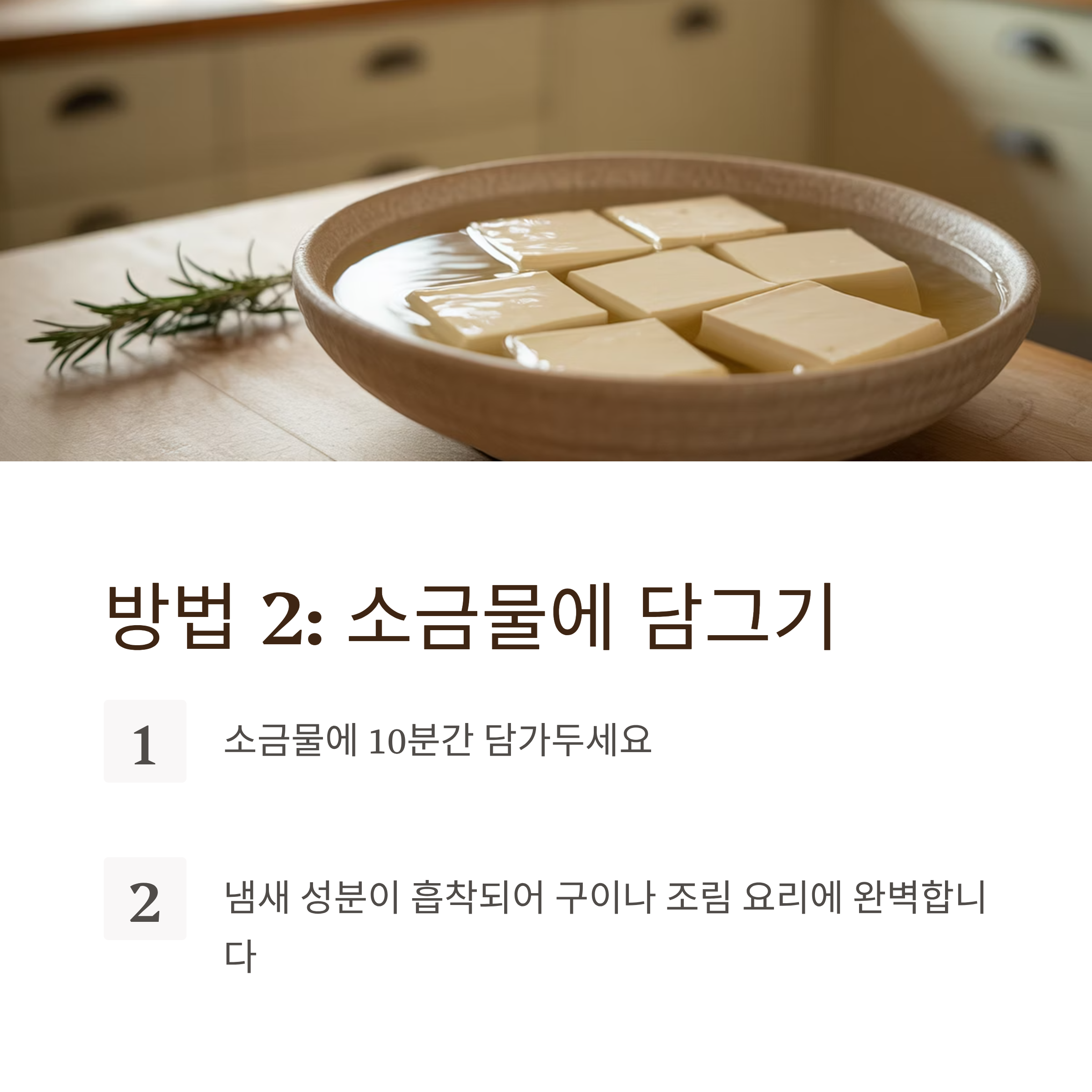 두부를 소금물에 10분 정도 담가두는 방법도 효과적입니다.
