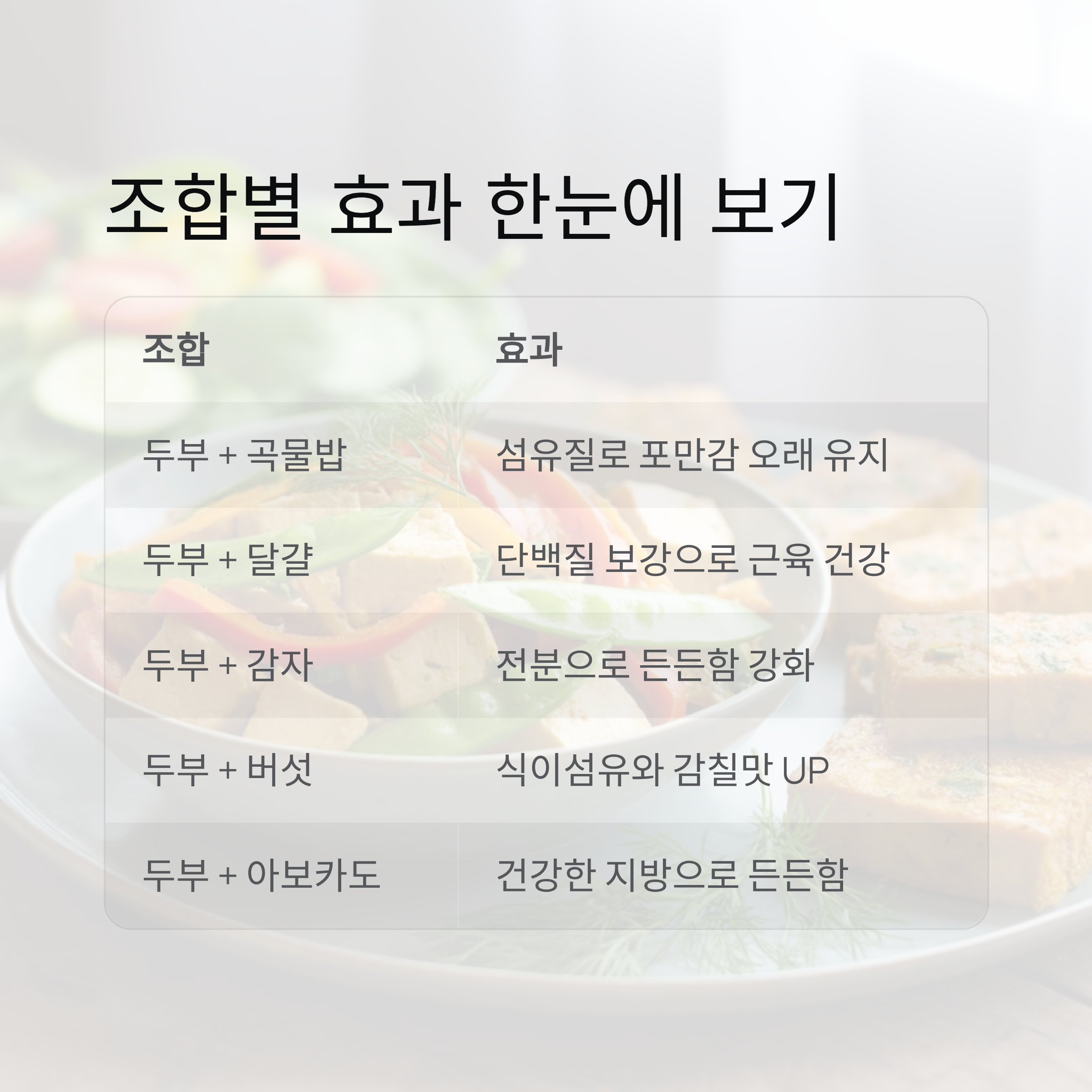 | 두부 + 달걀 | 단백질 보강, 근육 건강 도움 |