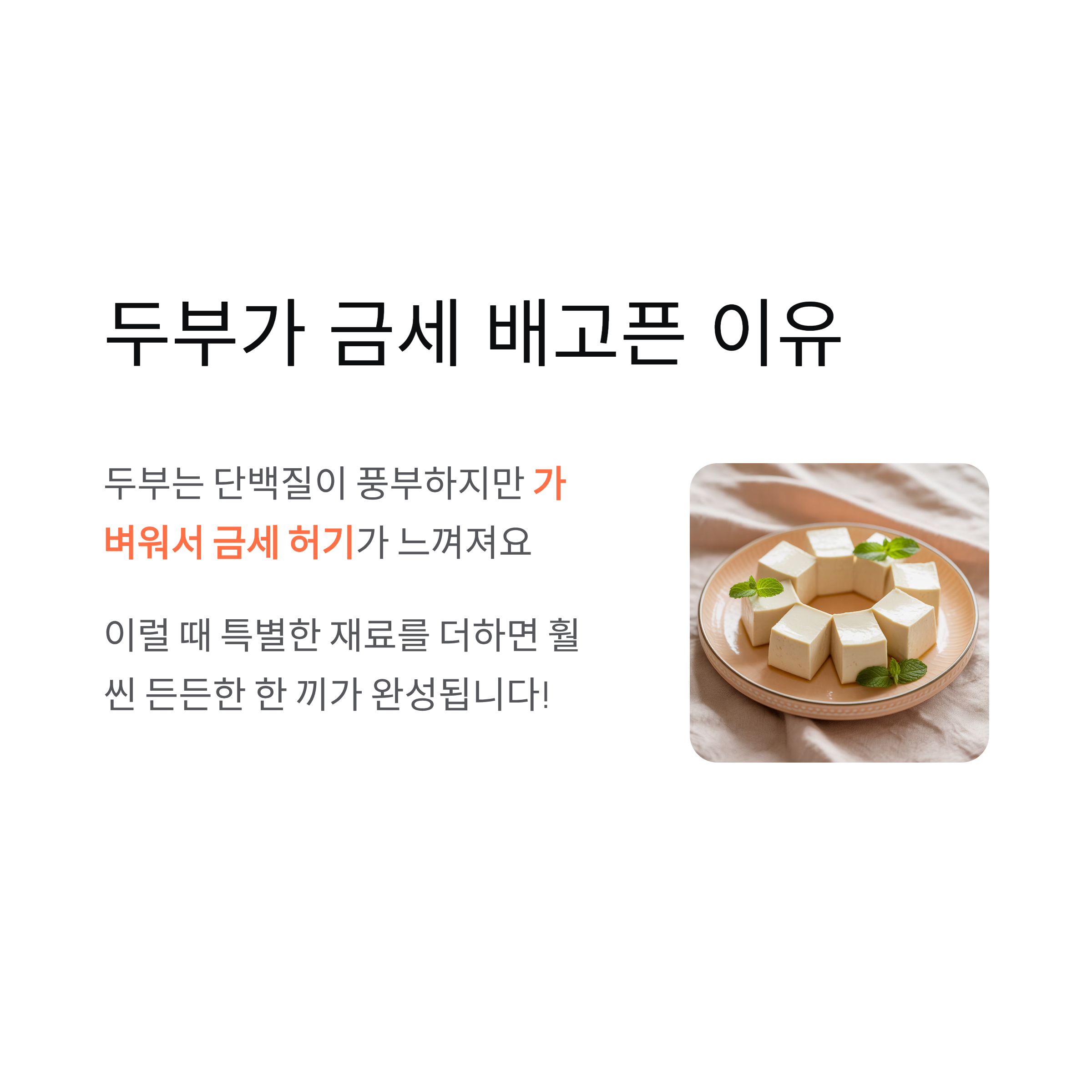 두부는 단백질이 풍부하고 담백해 다양한 요리에 활용되지만, 가볍다 보니 금세 허기가 느껴지기도 합니다.