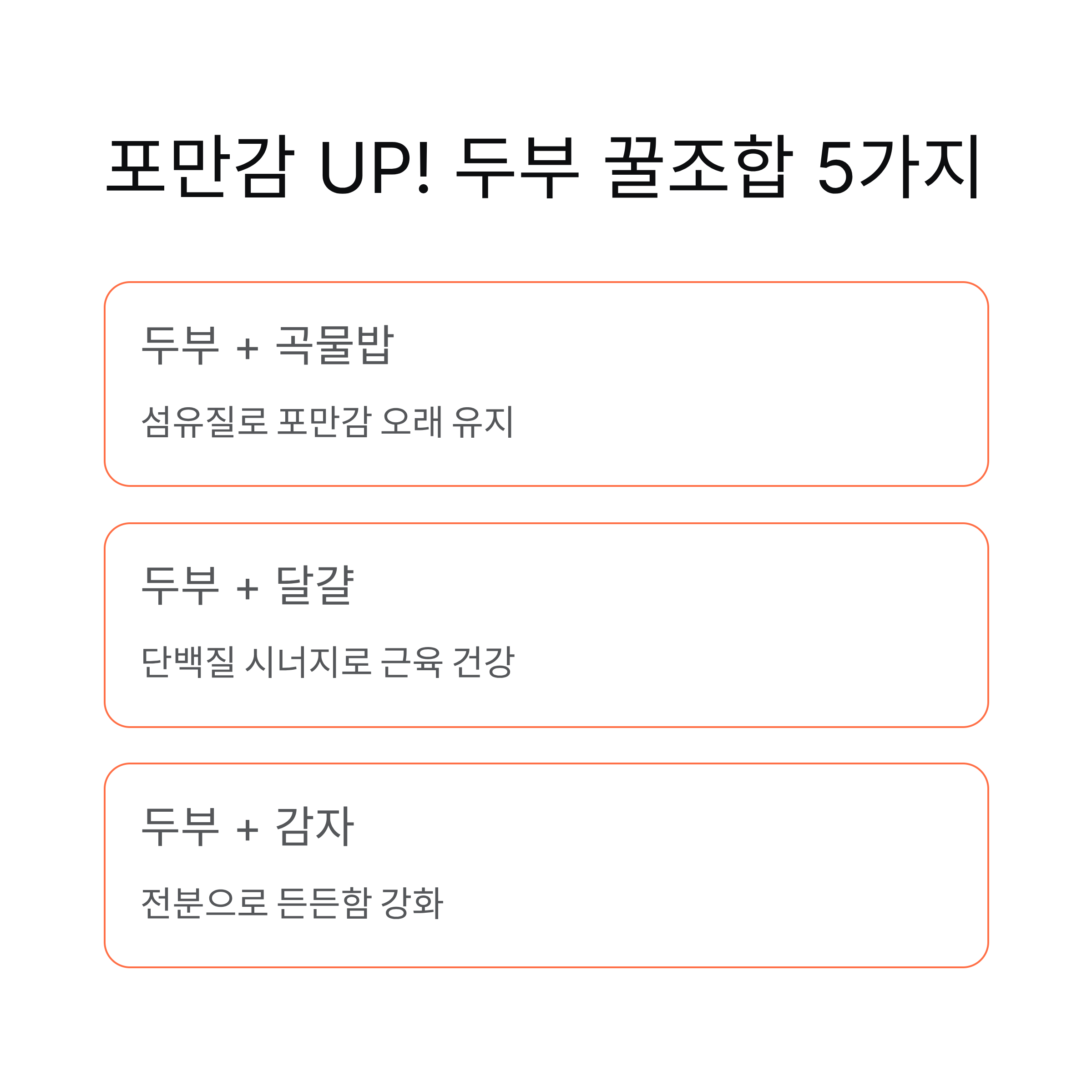 | 두부 + 곡물밥 | 섬유질 풍부, 포만감 오래 유지 |