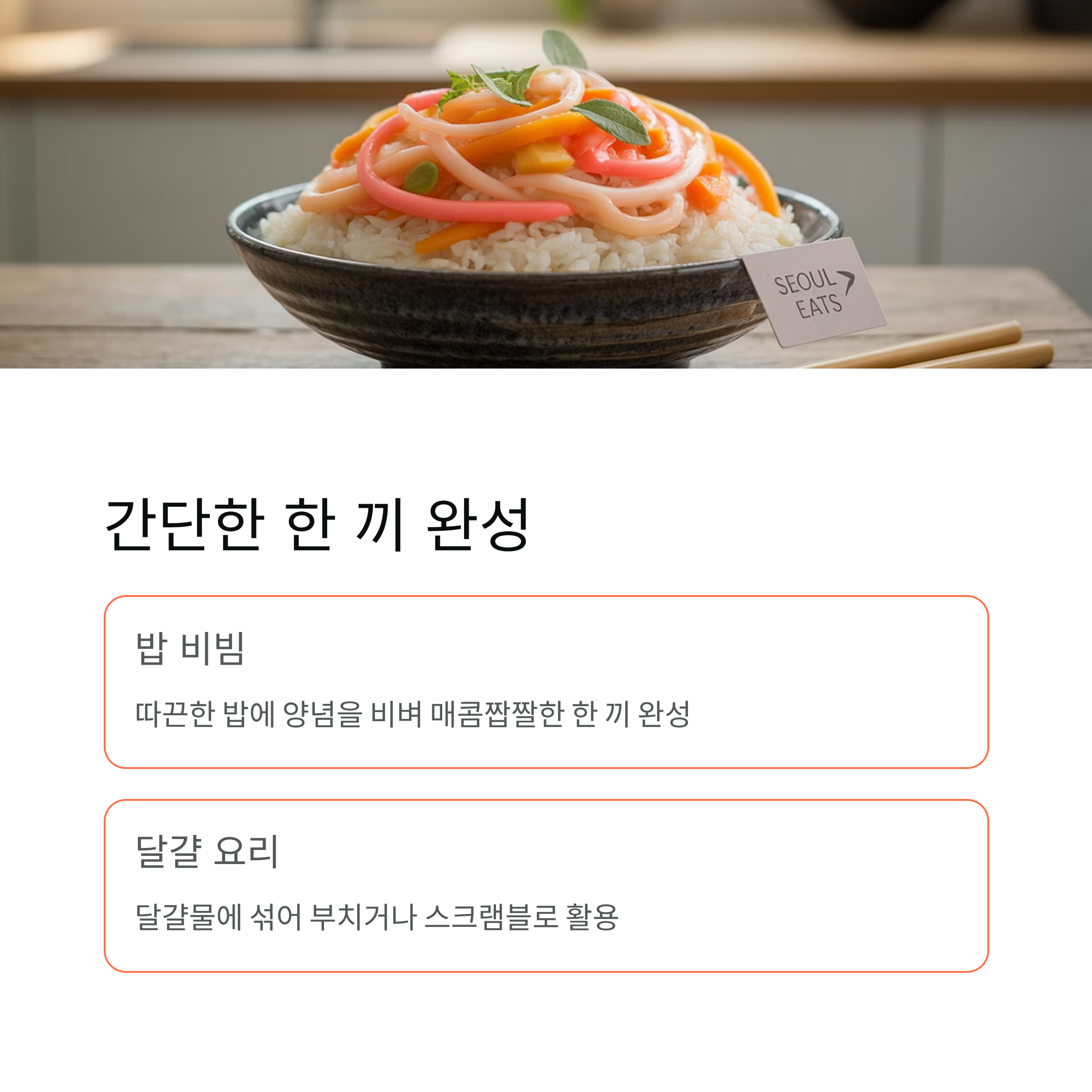 양념의 매콤짭짤한 맛이 밥과 어우러져 간단한 한 끼로 손색이 없습니다.