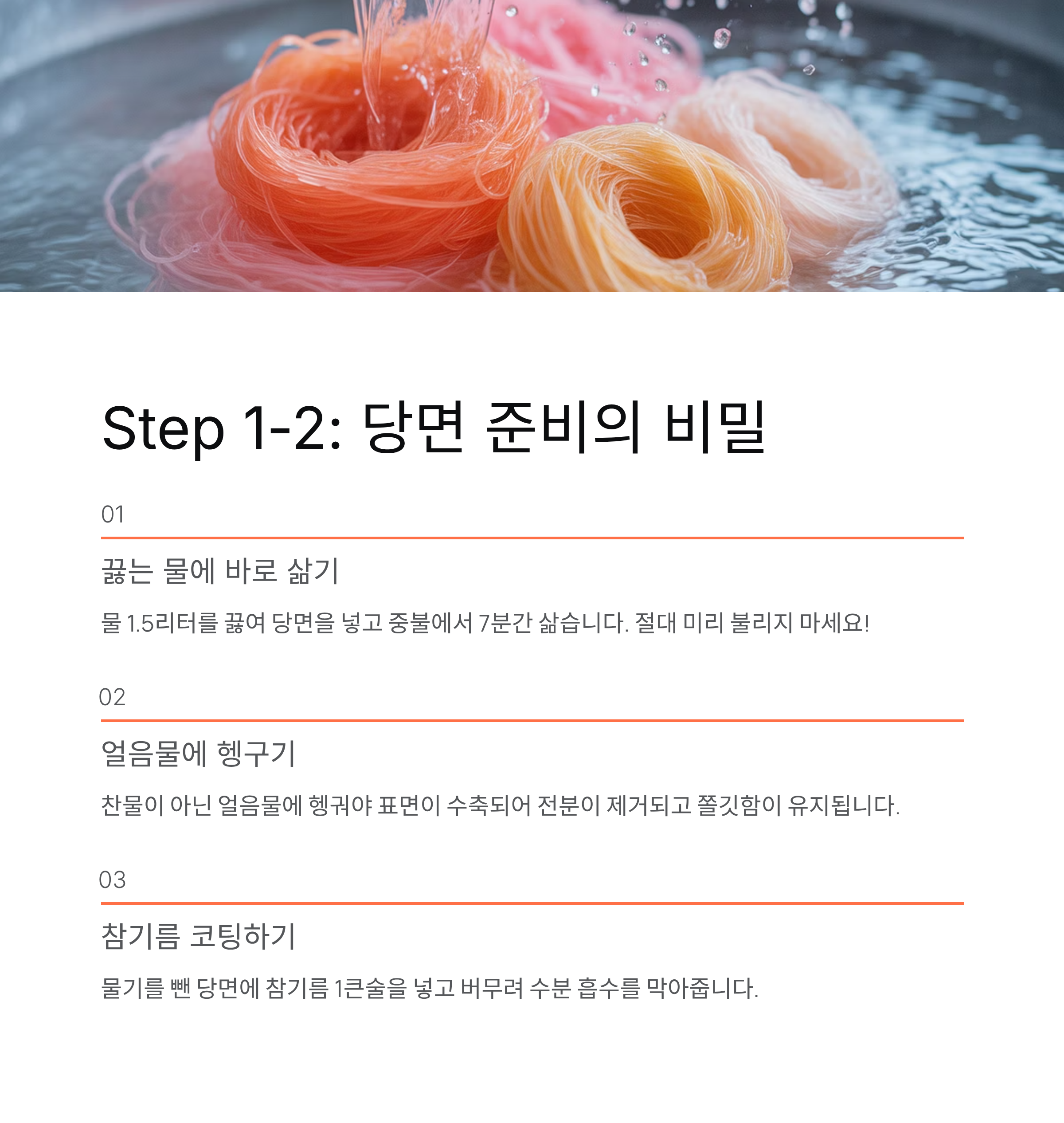 | 1 | 당면 삶기 | 불리지 않고 바로 삶기 |