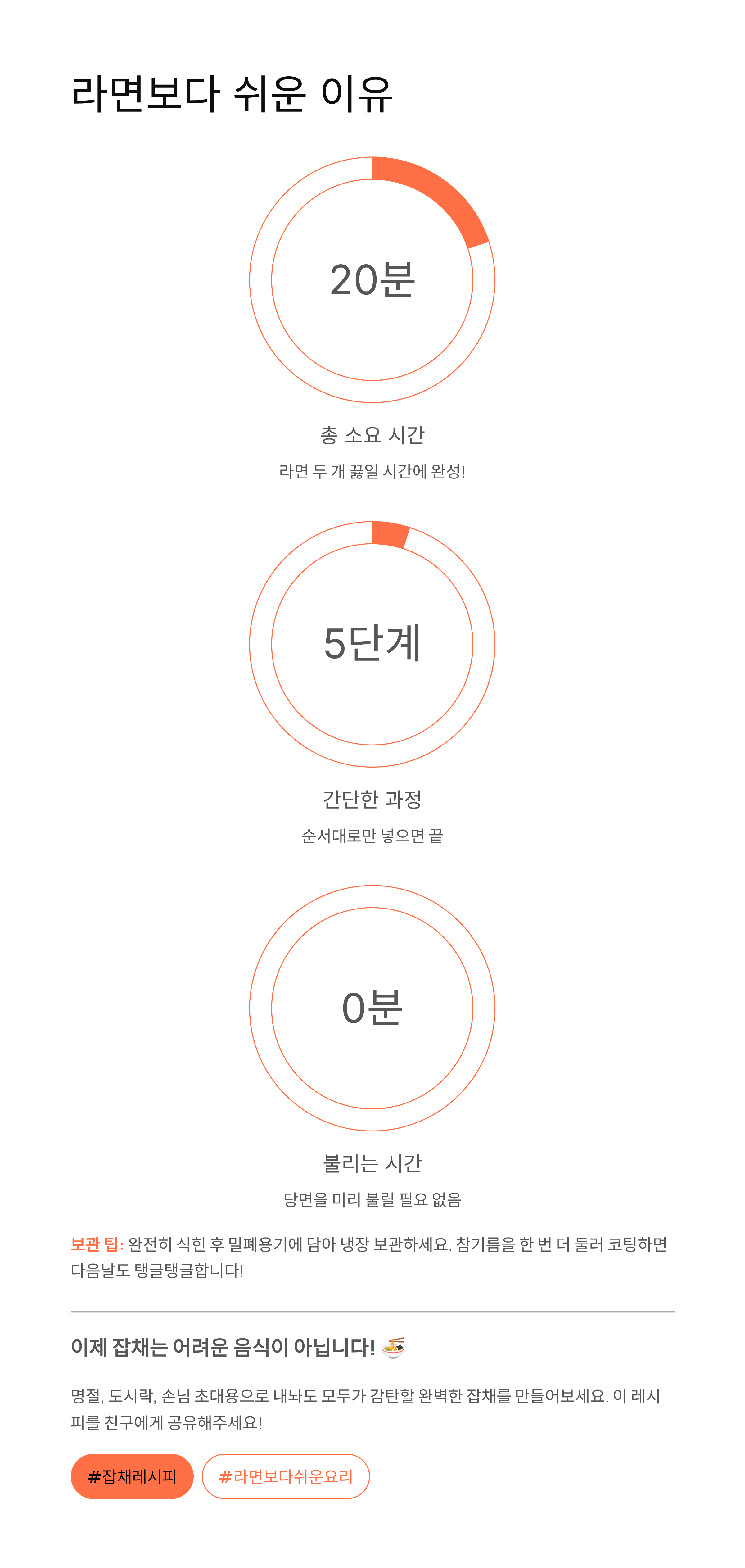 라면보다 쉽고, 하루가 지나도 퍼지지 않는 황금비율 잡채를 꼭 한 번 만들어보세요.