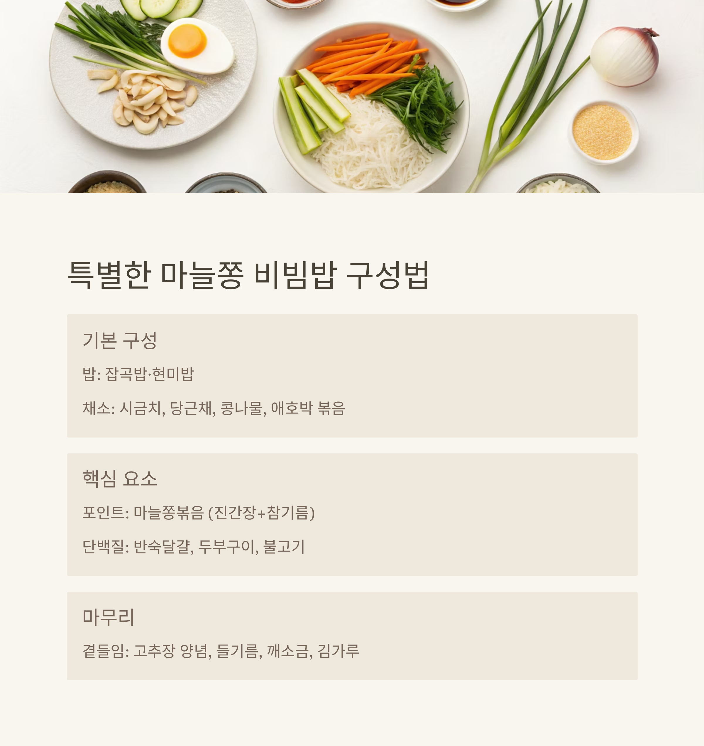 마늘쫑 비빔밥, 이렇게 구성하세요