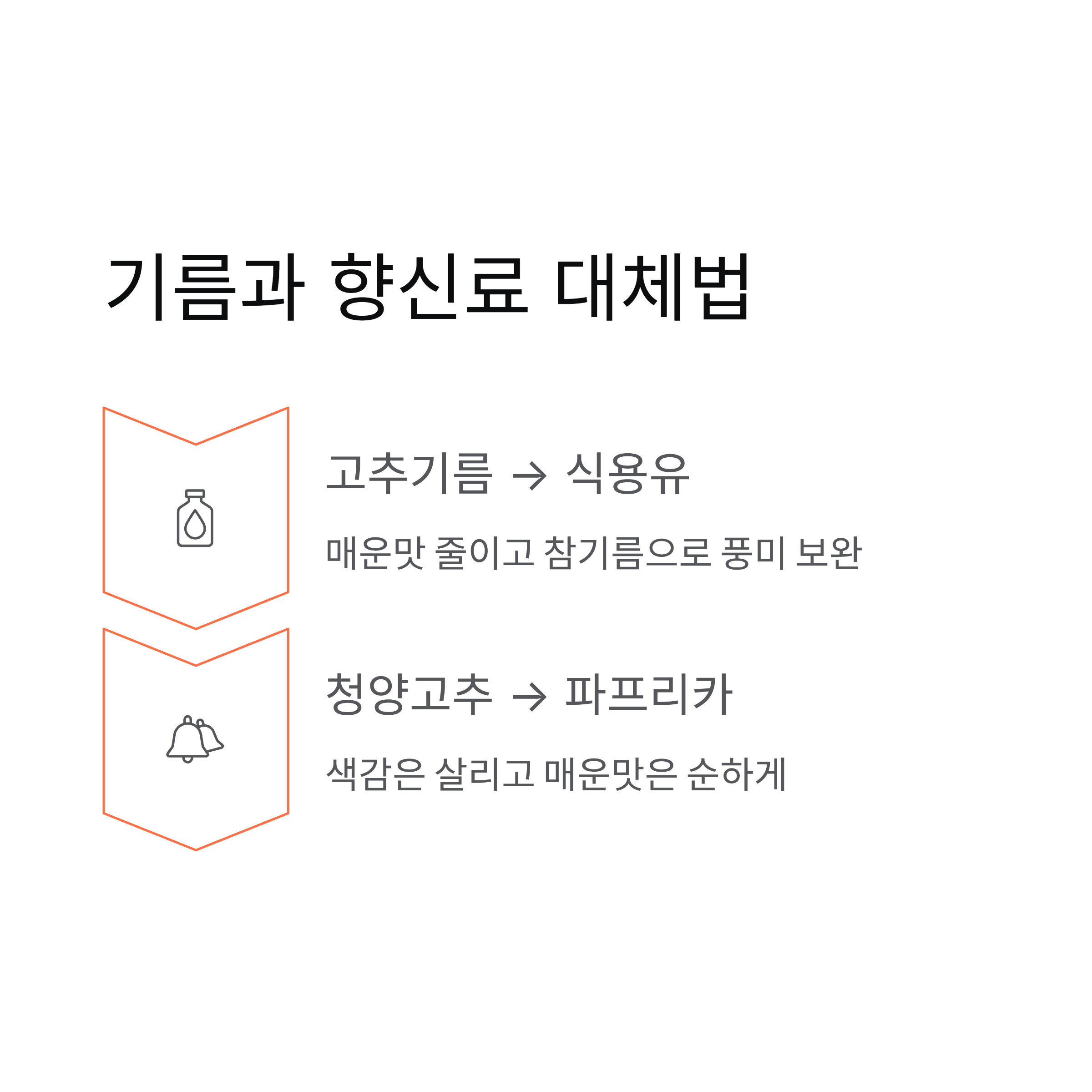 | 청양고추 대신 파프리카 | 색감 유지 | 칼칼하되 순한 맛 |