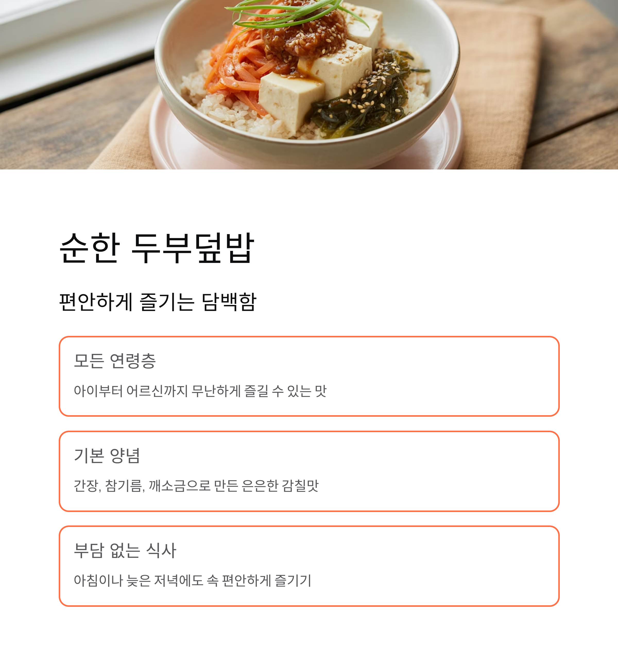 순한 두부덮밥, 편안하게 즐기는 담백함