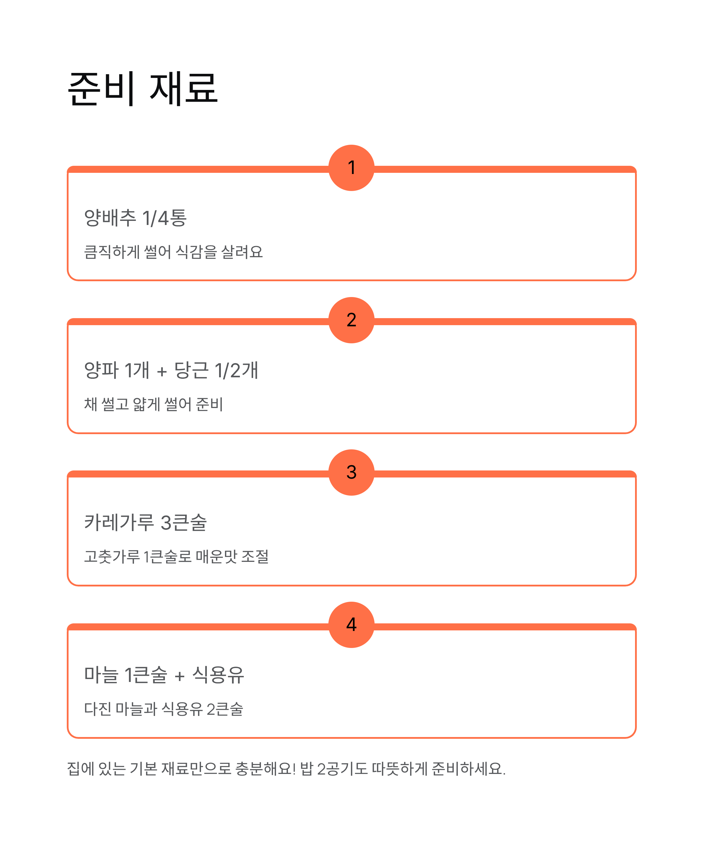 | 양배추 | 1/4통 | 큼직하게 썰기 |