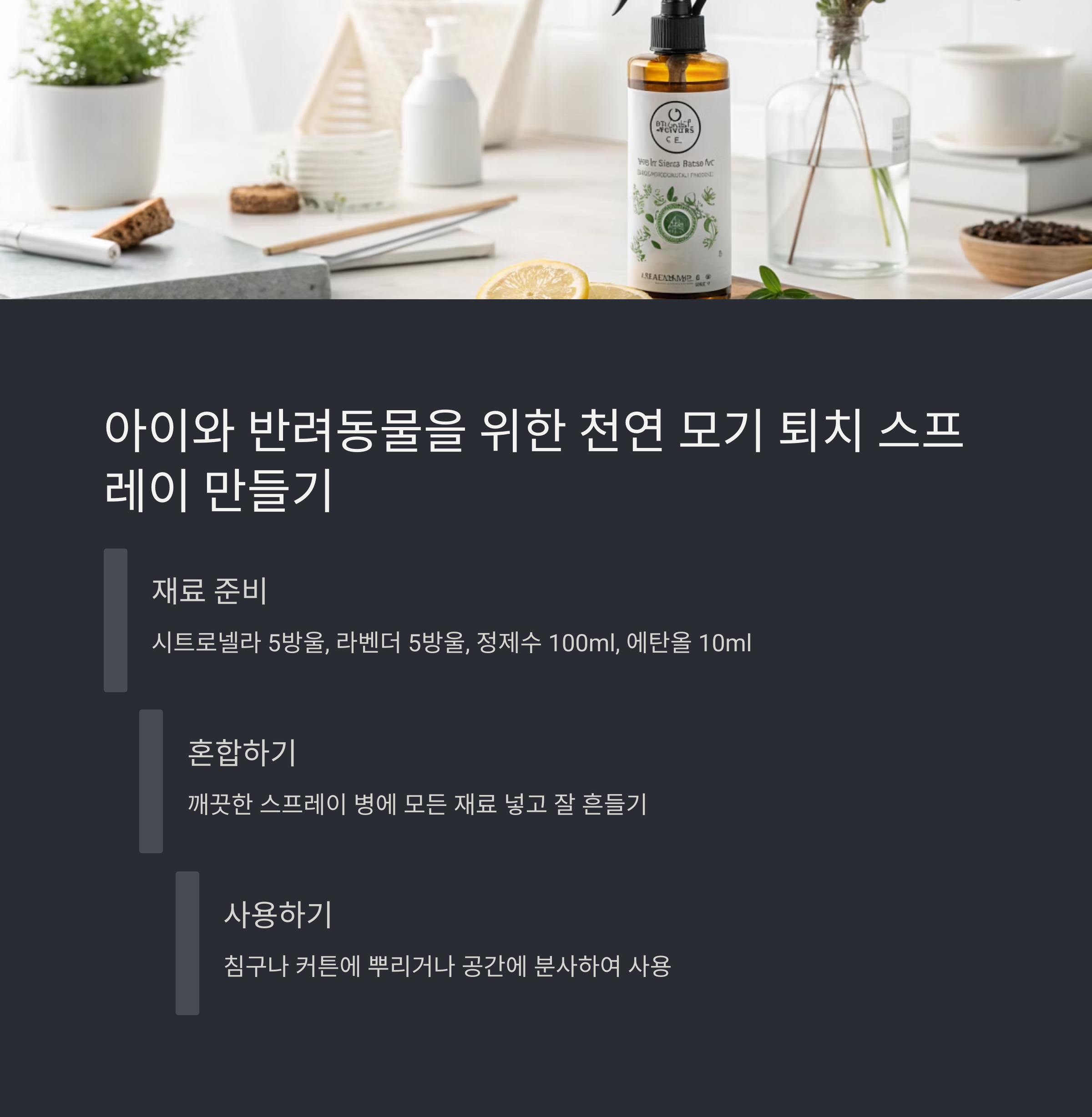 시트로넬라 5방울, 라벤더 5방울, 정제수 100ml,