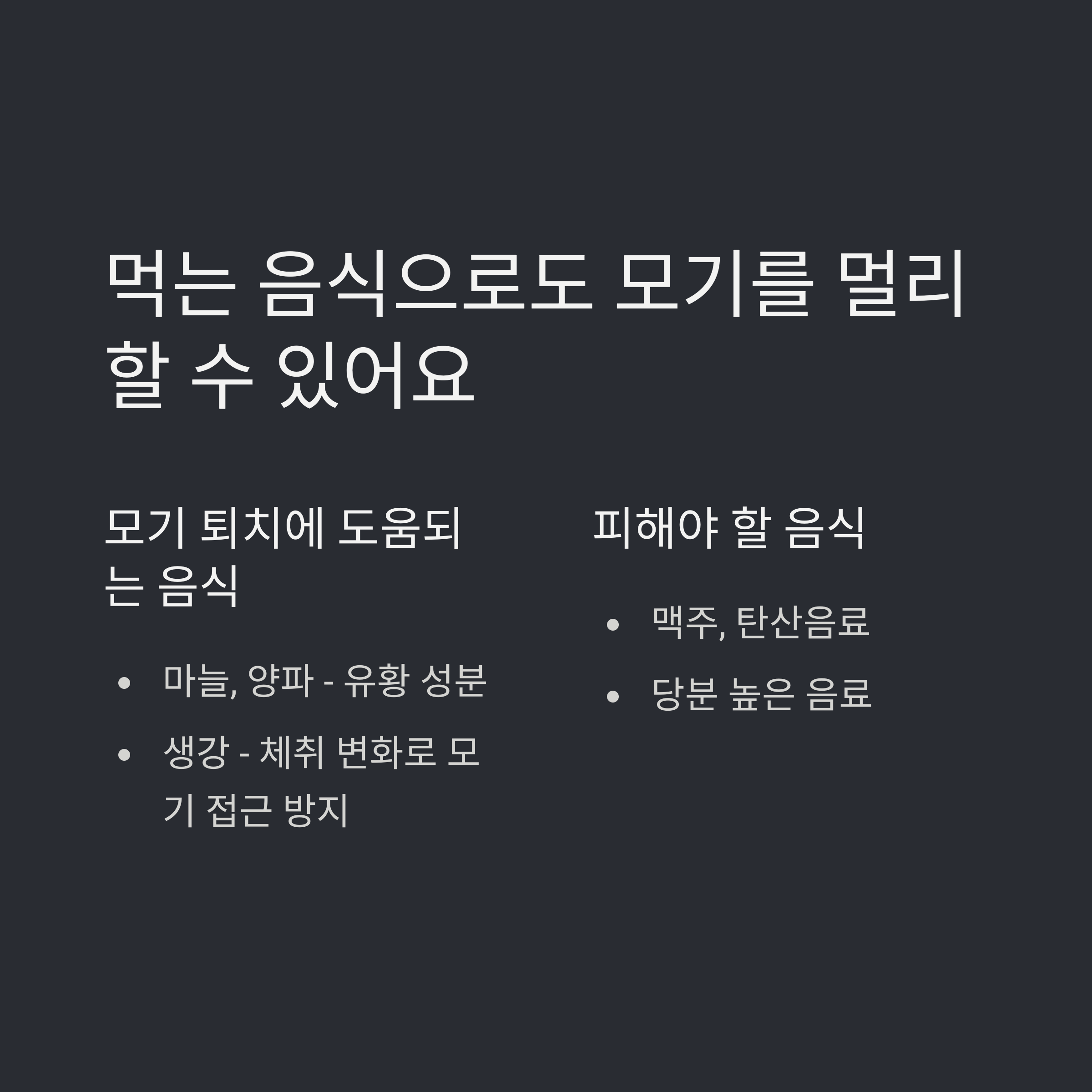 일부 음식은 모기를 가까이 오지 않게 하는 데 도움이 될 수 있어요.