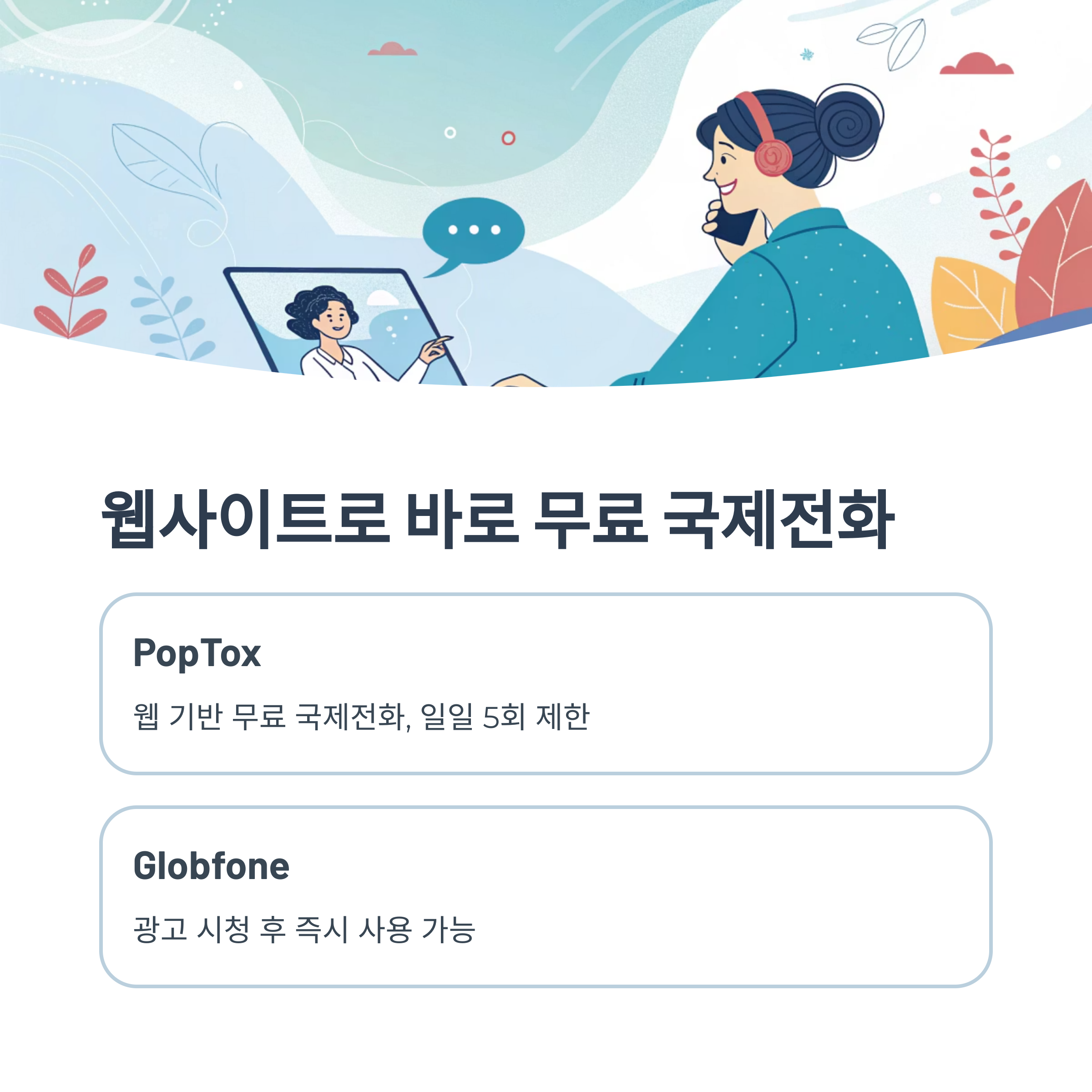 | PopTox | 웹 기반 무료 국제전화 지원 | 일일 횟수 제한 있음 (약 5회) |