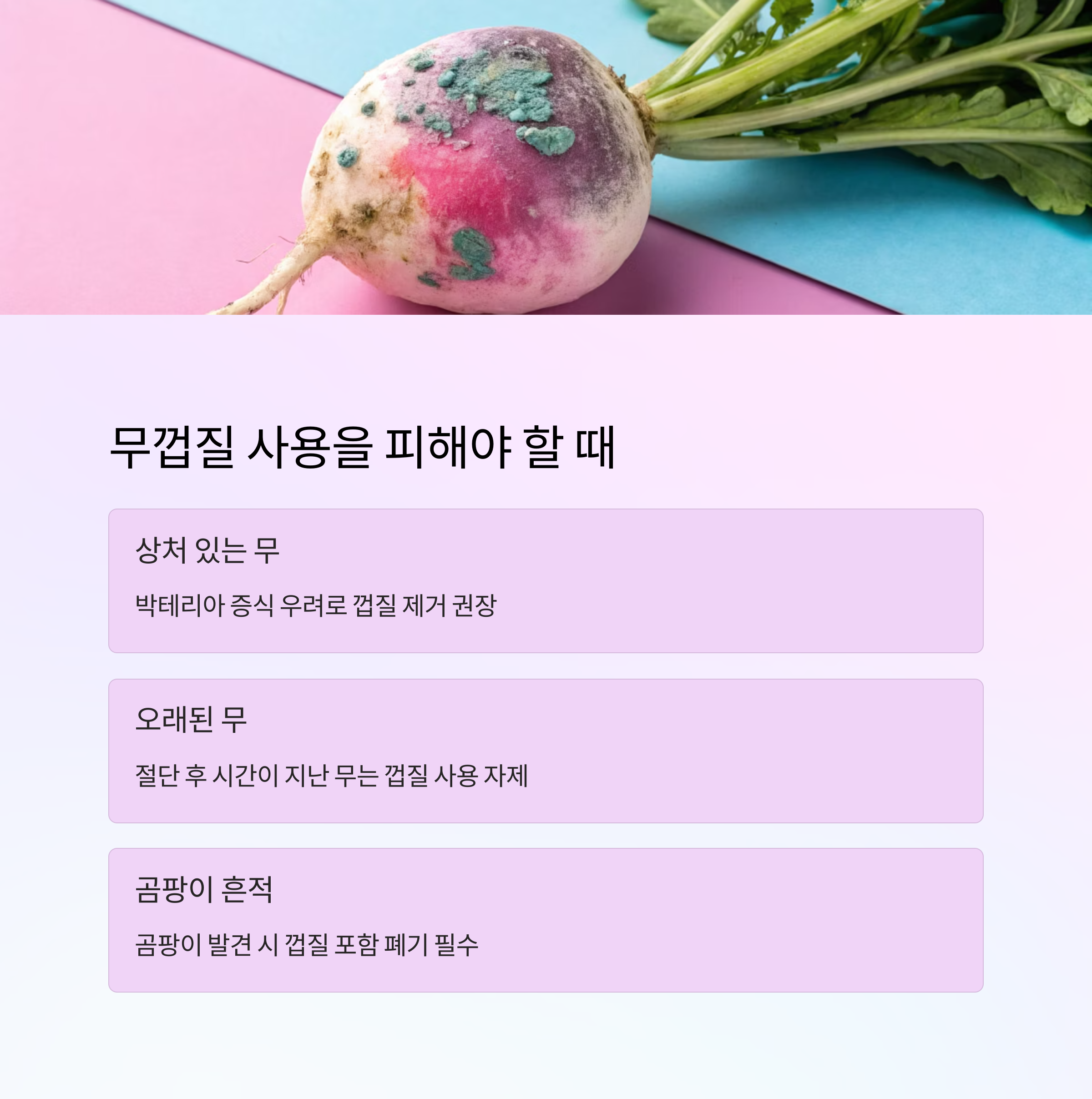 또한 절단 후 오래된 무, 저장 중 곰팡이 흔적이 있는 경우도