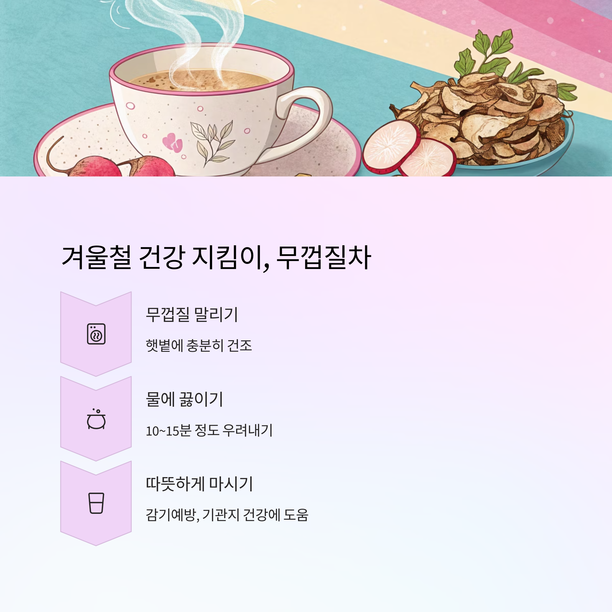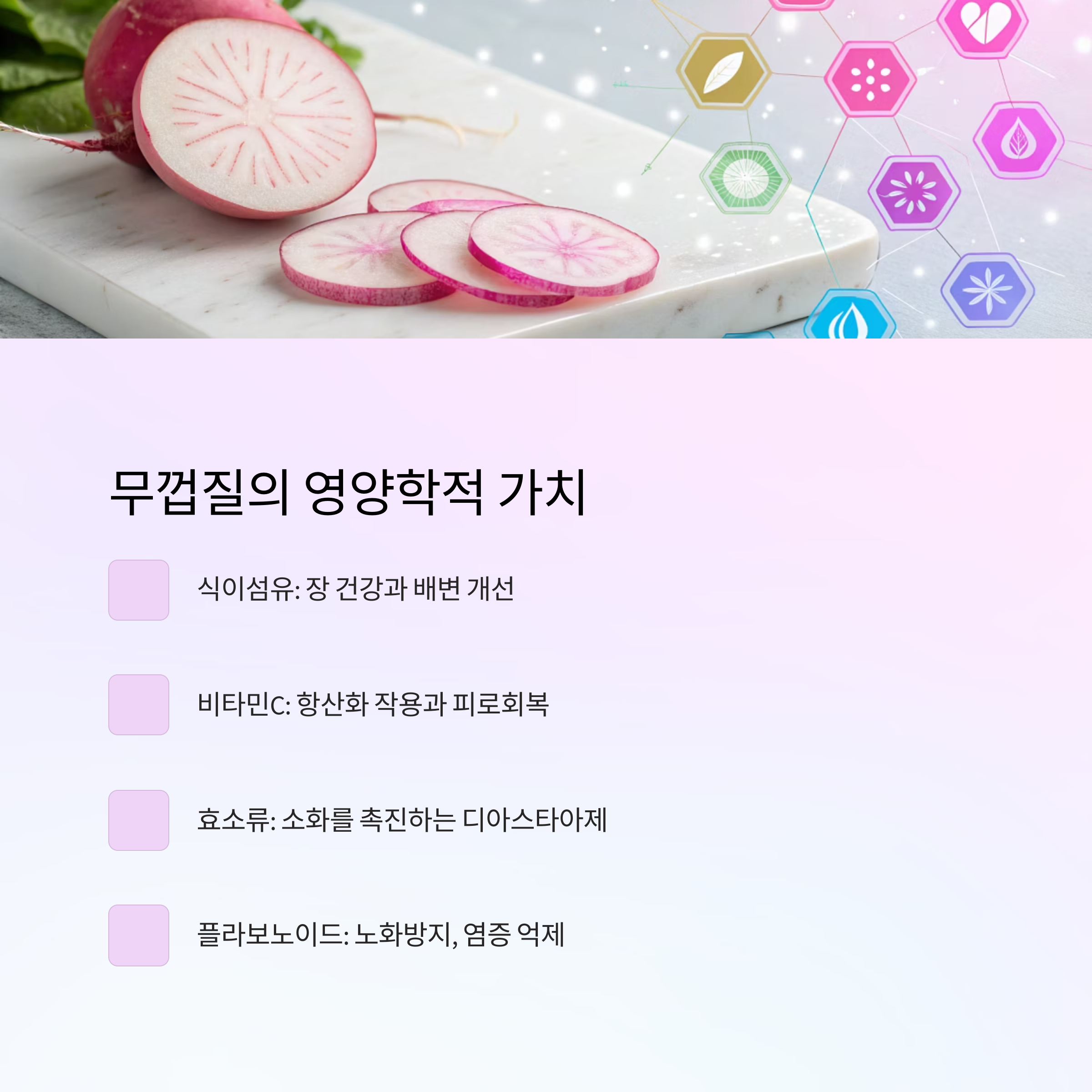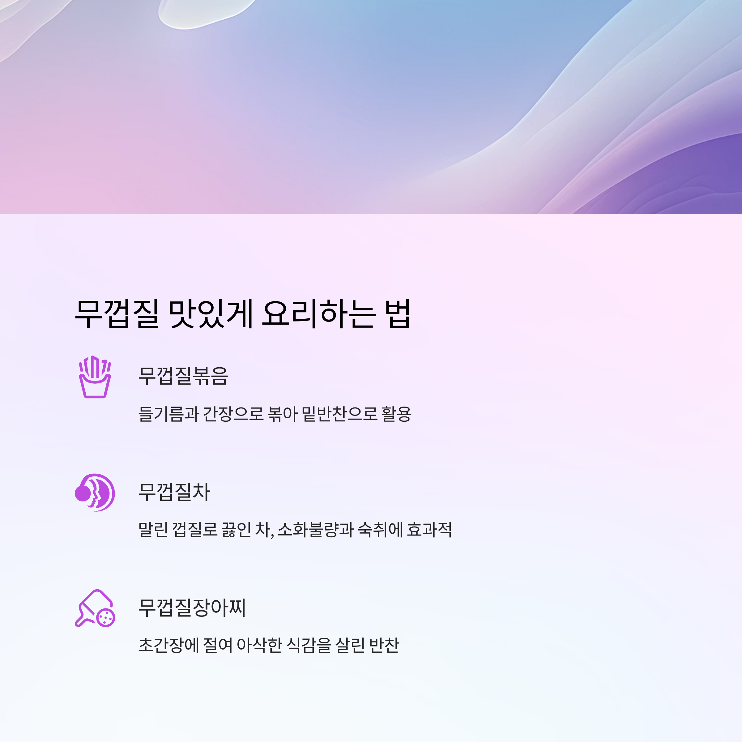 다양한 건강 효과를 누릴 수 있어 요즘은 무껍질 활용법이 새롭게 주목받고 있습니다.