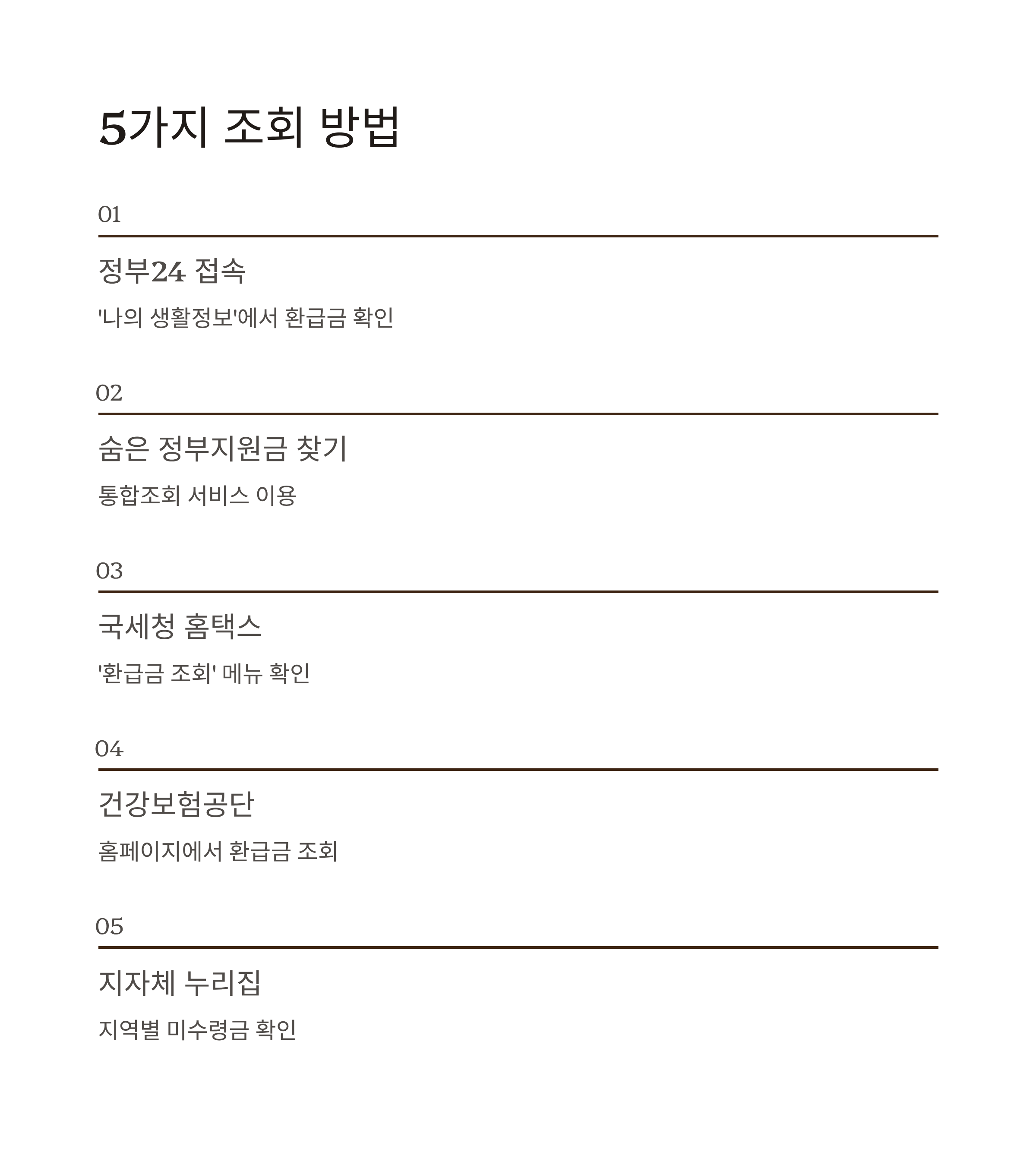- 지방자치단체 누리집 → 지역별 미수령금 확인