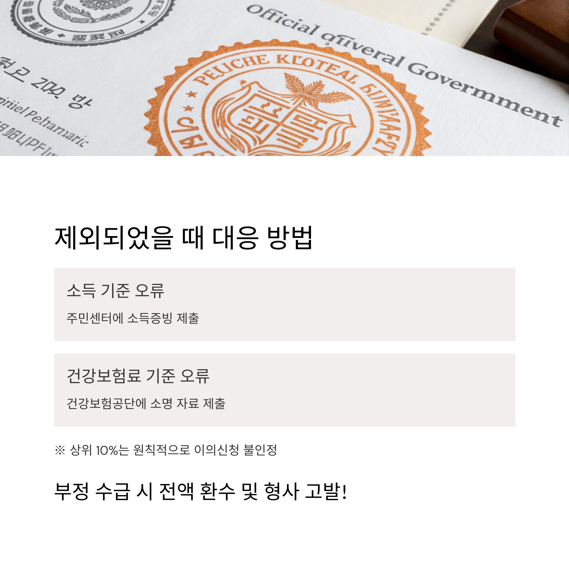 | 고소득자 예외 신청 불가 | 상위 10%는 원칙적으로 이의신청 불인정 |