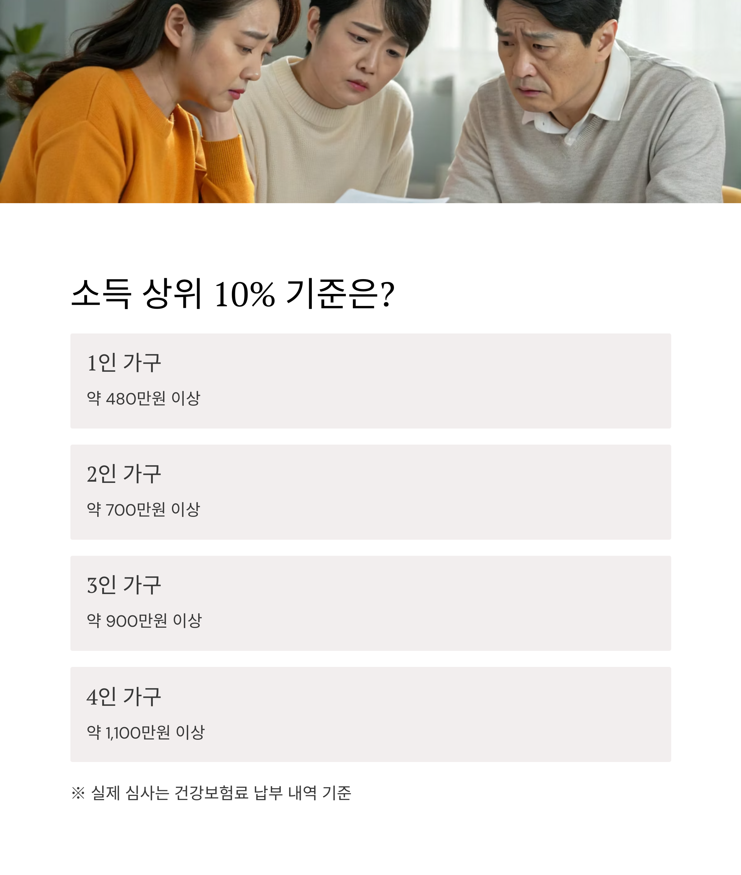 ※ 소득은 건강보험료 납부액과 국세청 과세정보 기준으로 산정됨