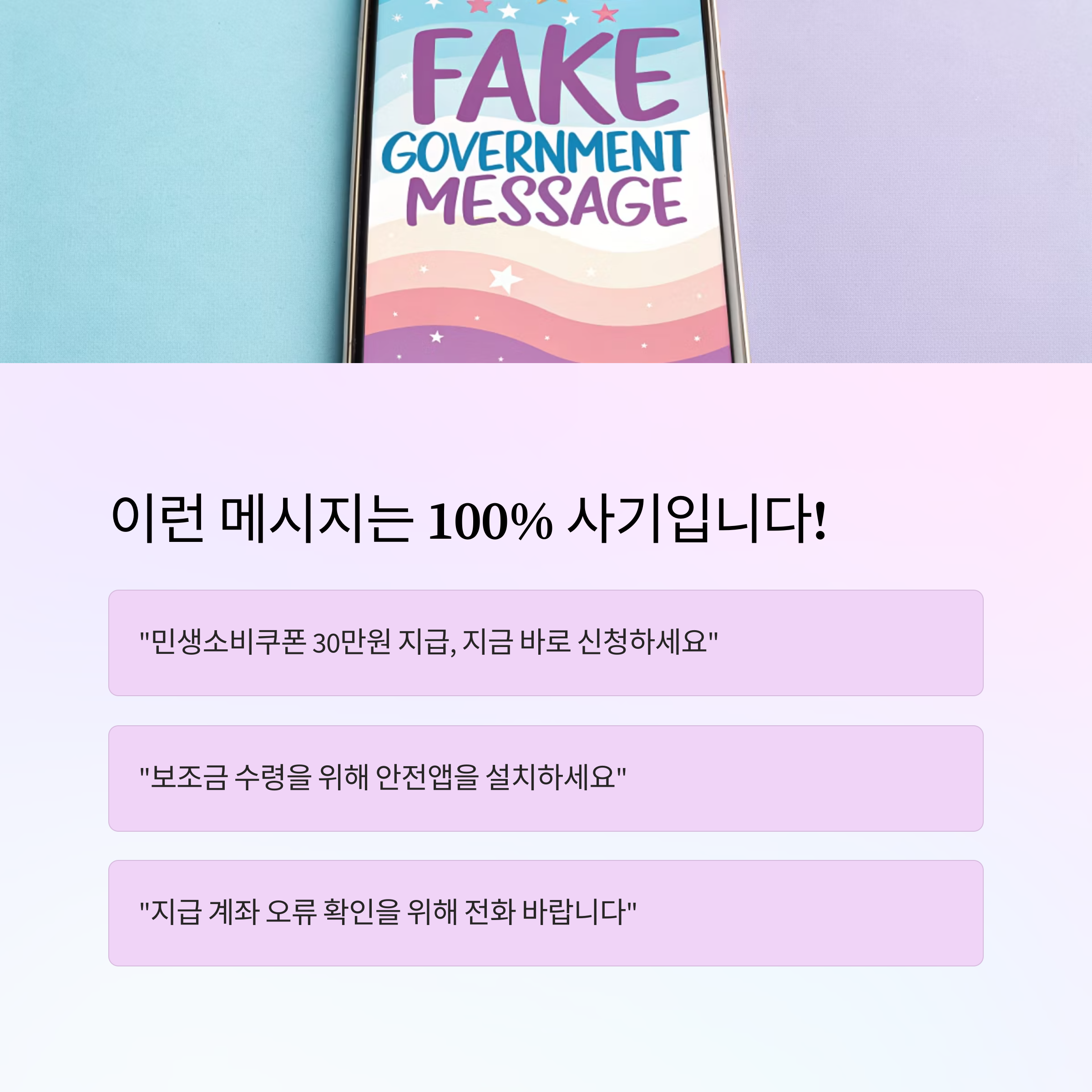 정부지원금 사칭, 민생회복 소비쿠폰 지급 사기 주의보!