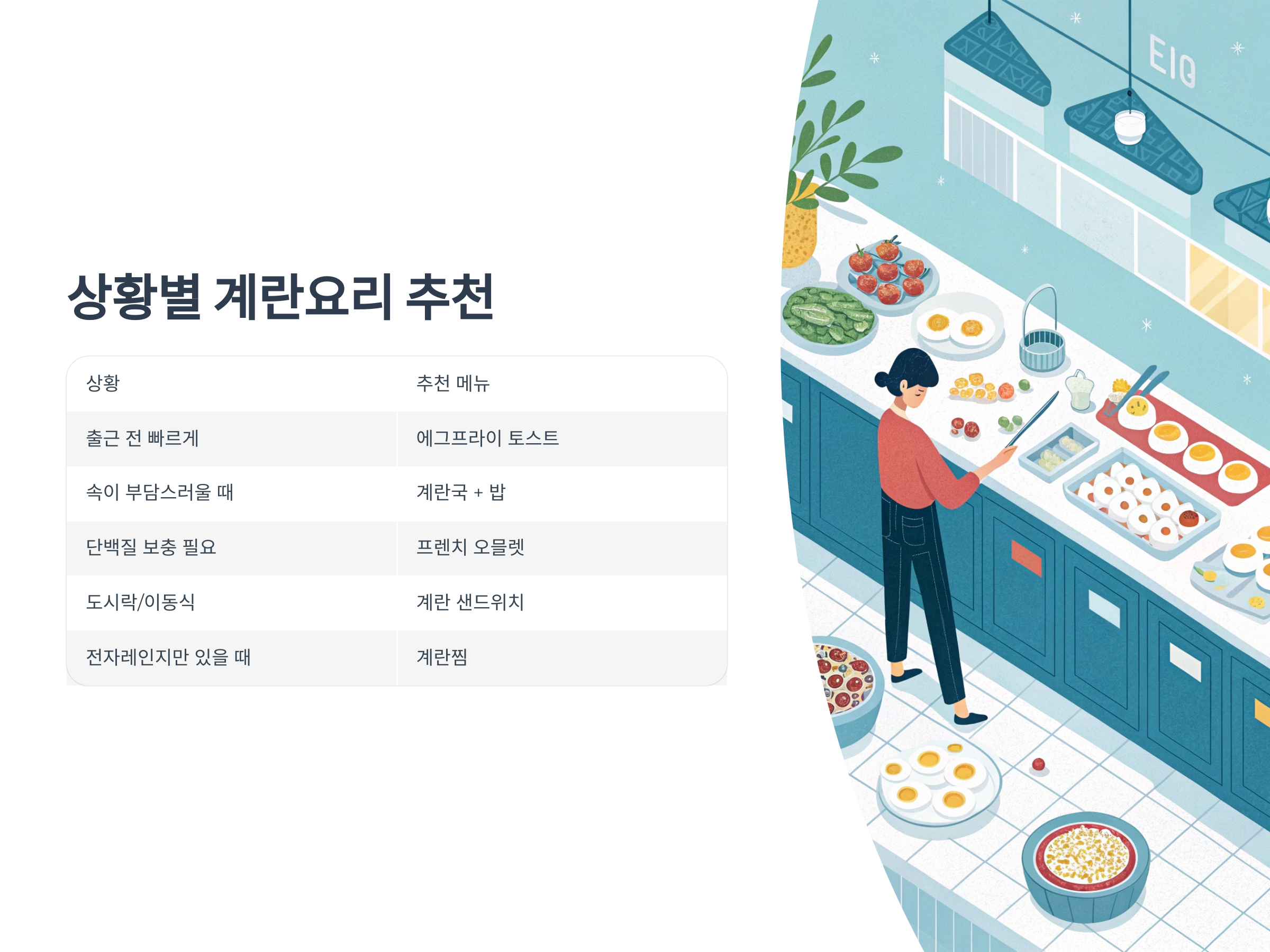 아침엔 어렵게 생각 말고, 계란 하나로 간편하게 시작하세요!