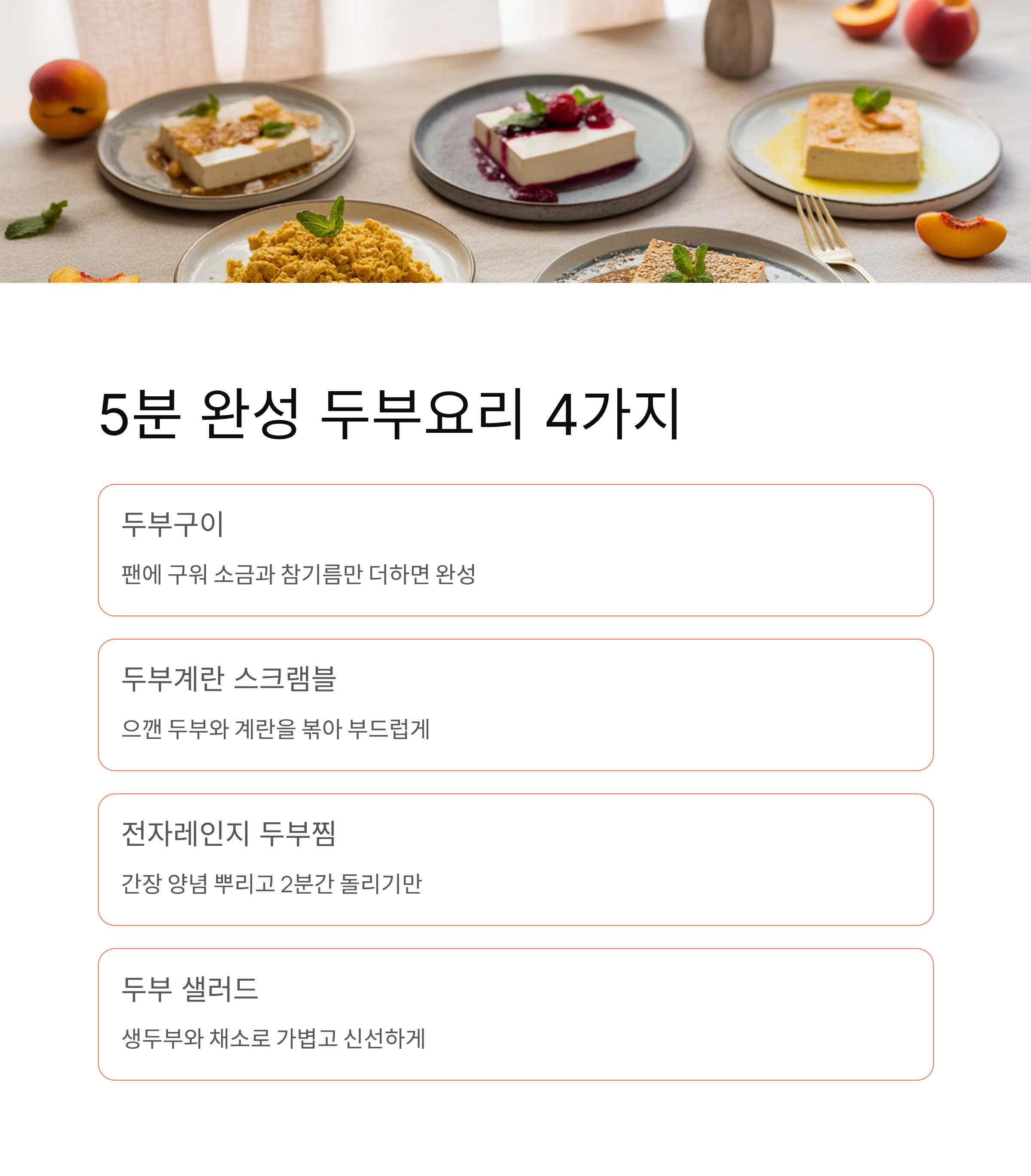 오늘은 아침 식사로 딱 맞는 초간단 두부요리를 추천하고, 빠르게 만들 수 있는 요령과 활용 팁까지 정리해 드리겠습니다.