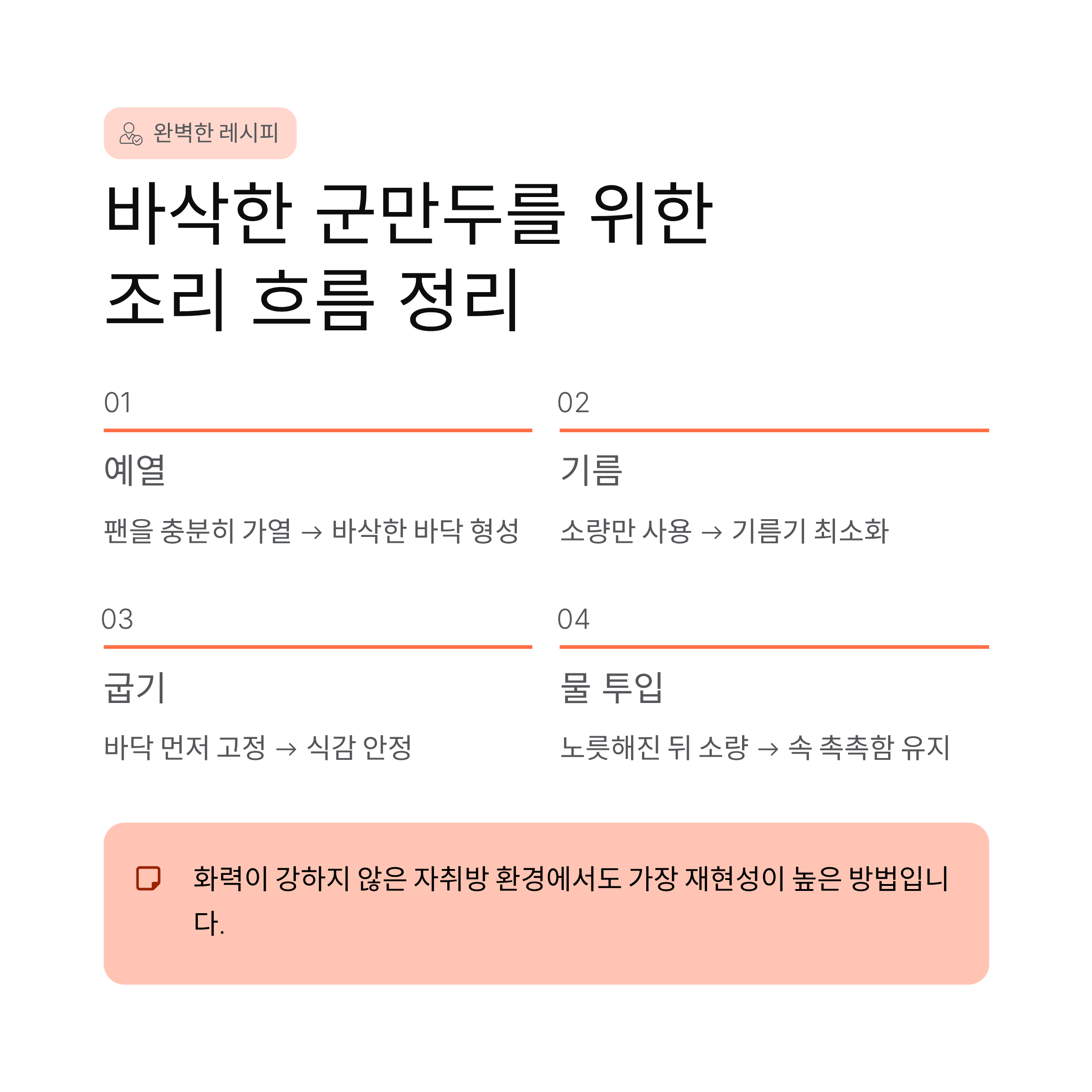 바삭한 군만두를 위한 조리 흐름 정리