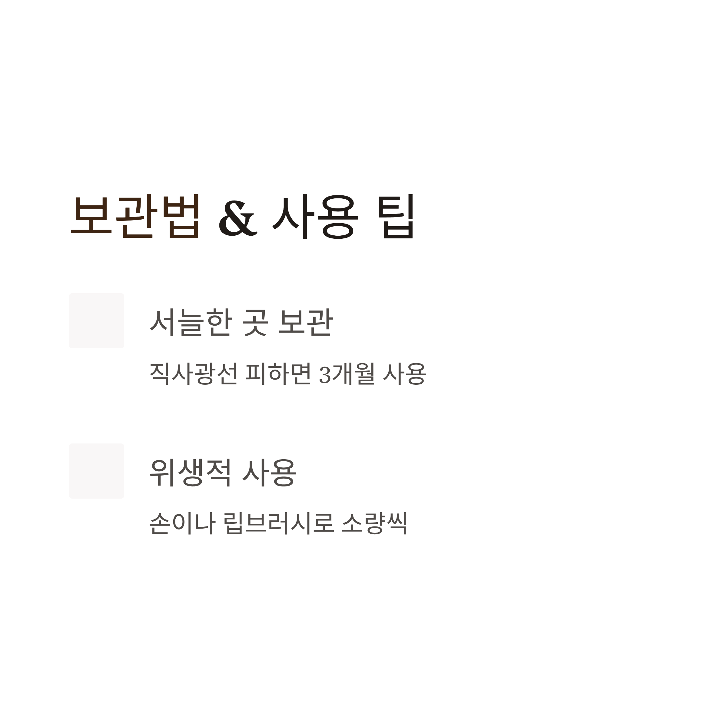 손이나 립브러시로 소량 덜어 쓰는 것이 위생적입니다.