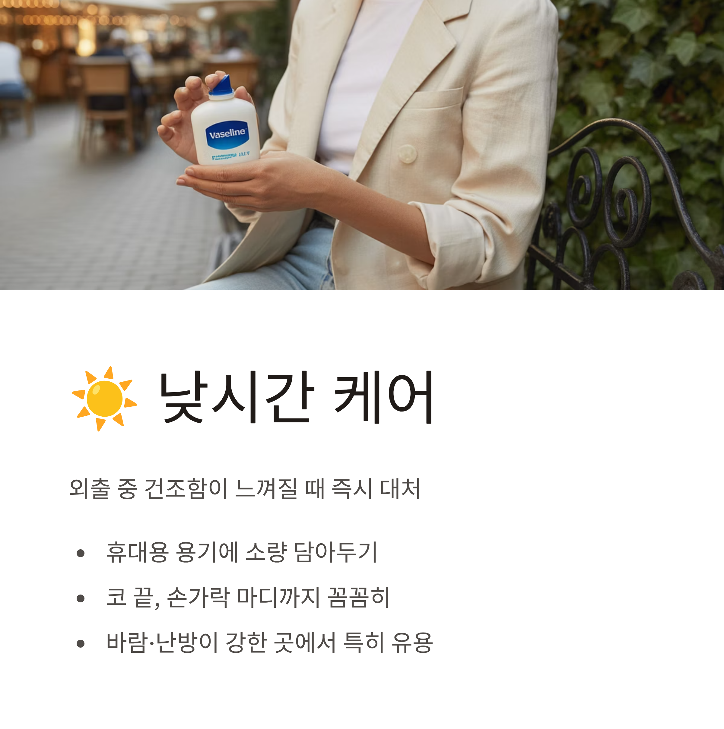 아래에서 아침·저녁별 바세린 활용 루틴을 확인해보세요.