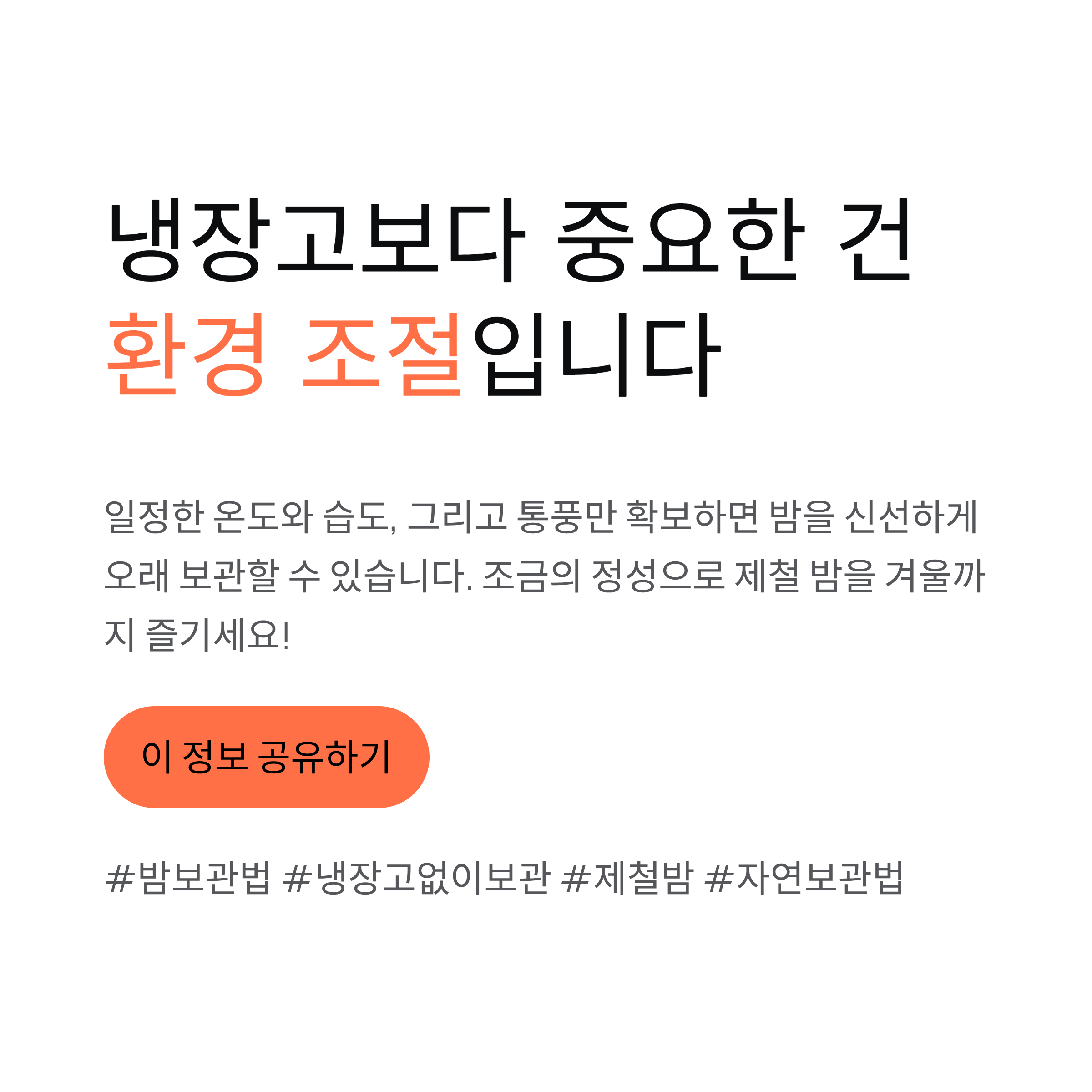 조금의 정성만 더하면 냉장고 없이도 밤을 신선하게, 달콤하게 유지할 수 있습니다.