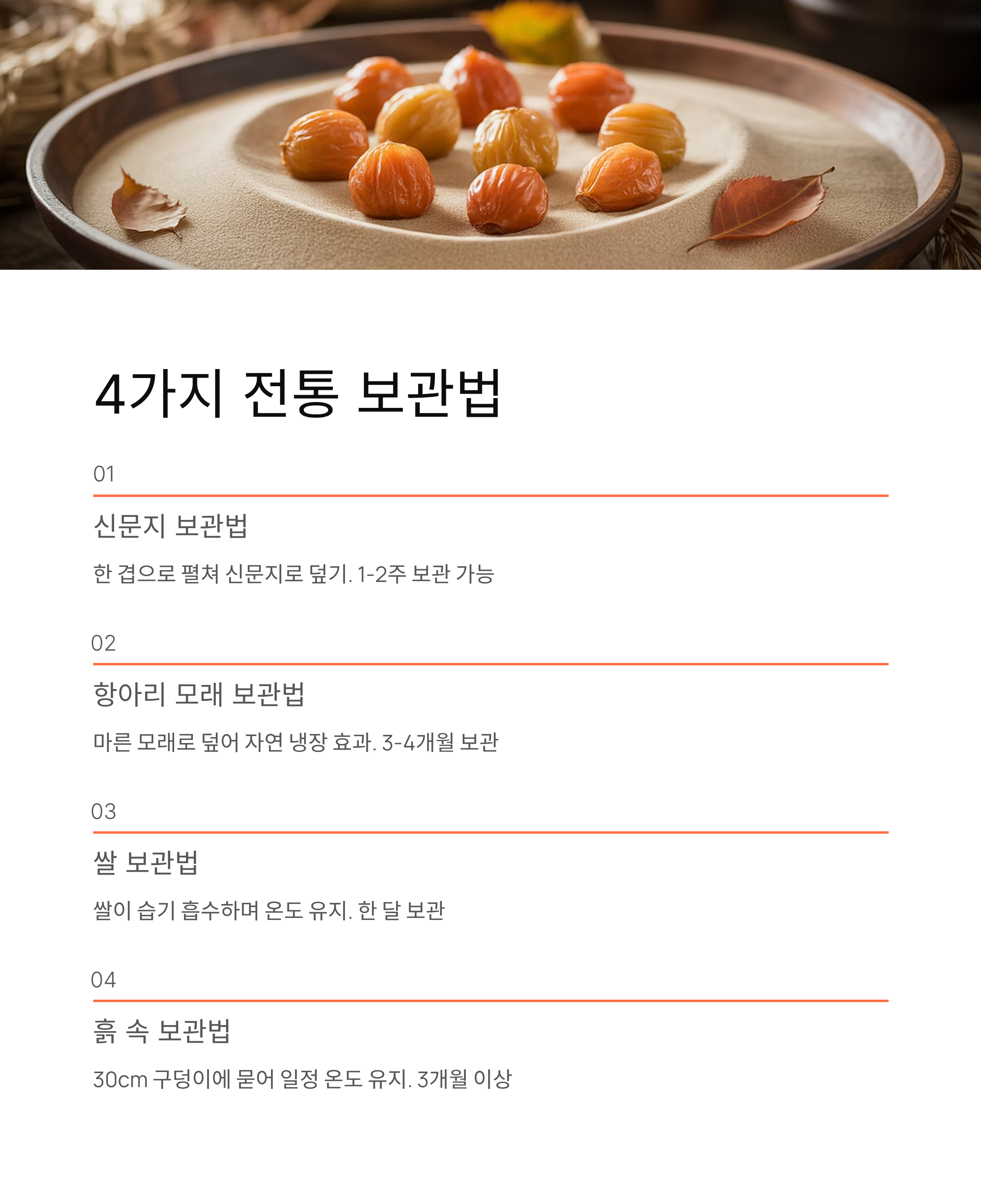 오늘은 냉장고 없이도 밤을 오래 보관할 수 있는 전통적인 방법과 환경 조절법을 알려드릴게요.