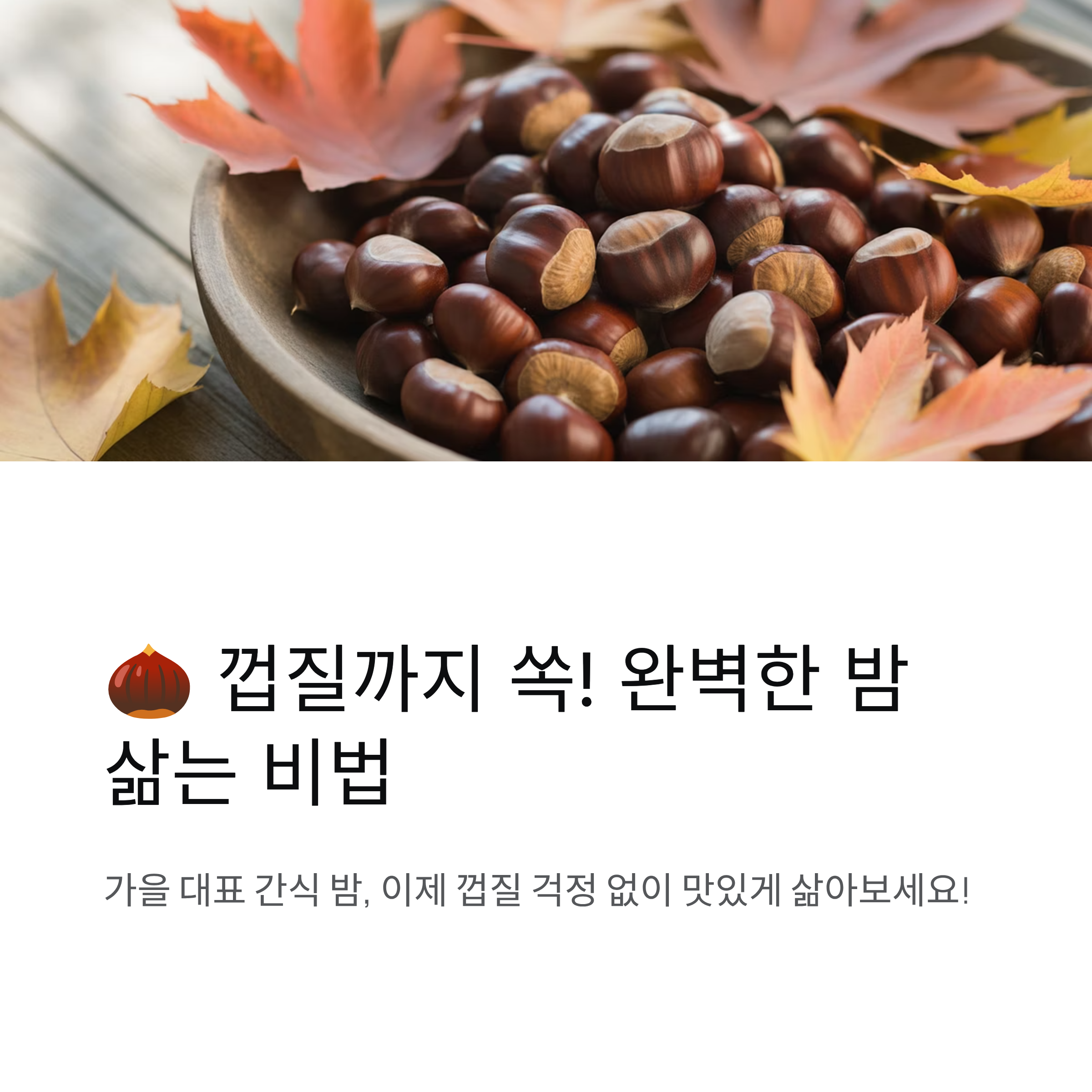 오늘 저녁, 따뜻한 밤 한 알에 가을의 맛을 담아보세요. 정성스러운 삶은 밤은 그 자체로 최고의 계절 간식이 될 거예요.