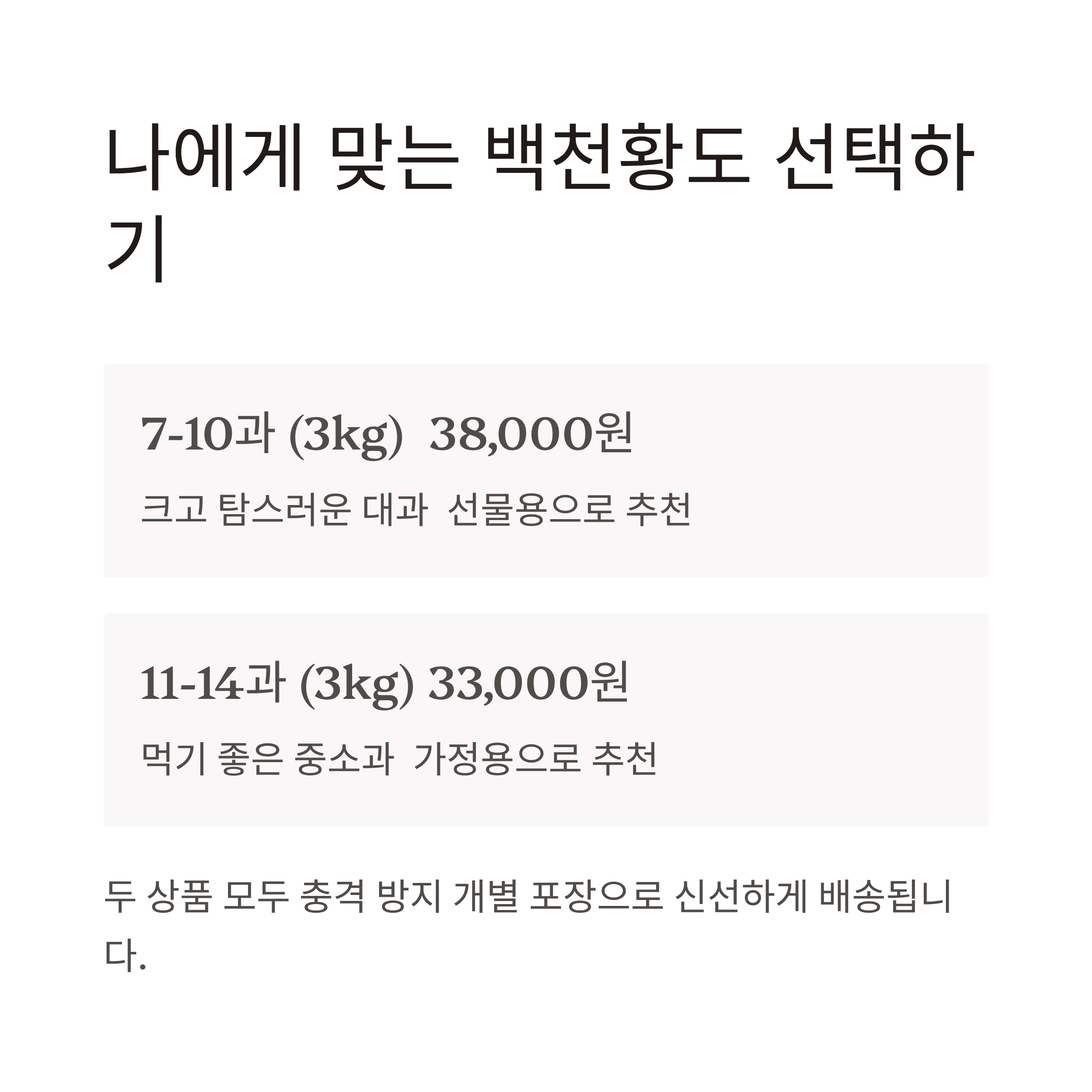 당도와 향, 크기까지 선택 가능한 백천황도 한정 예약