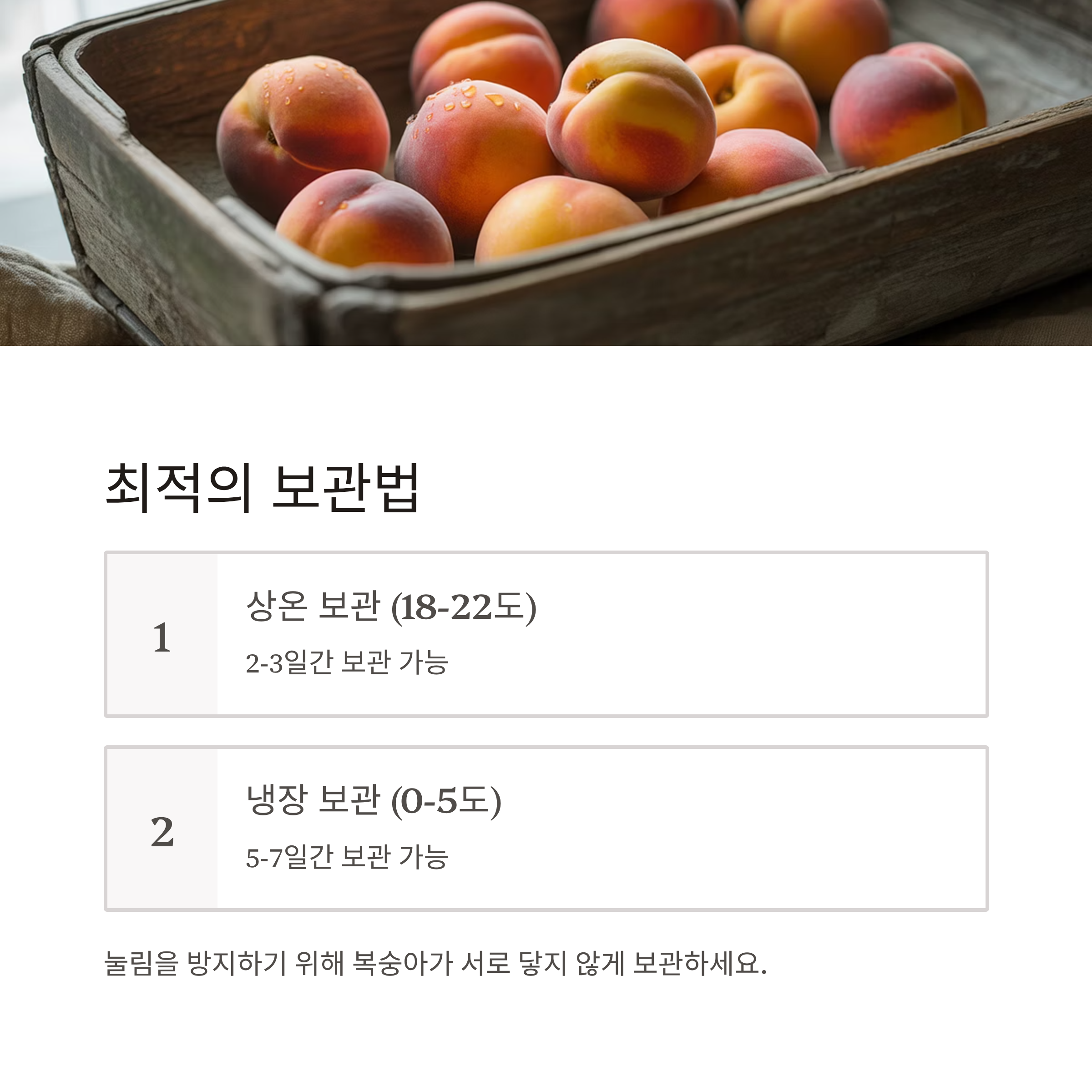 복숭아는 부드러운 과일이라 눌림이 생기기 쉽습니다.