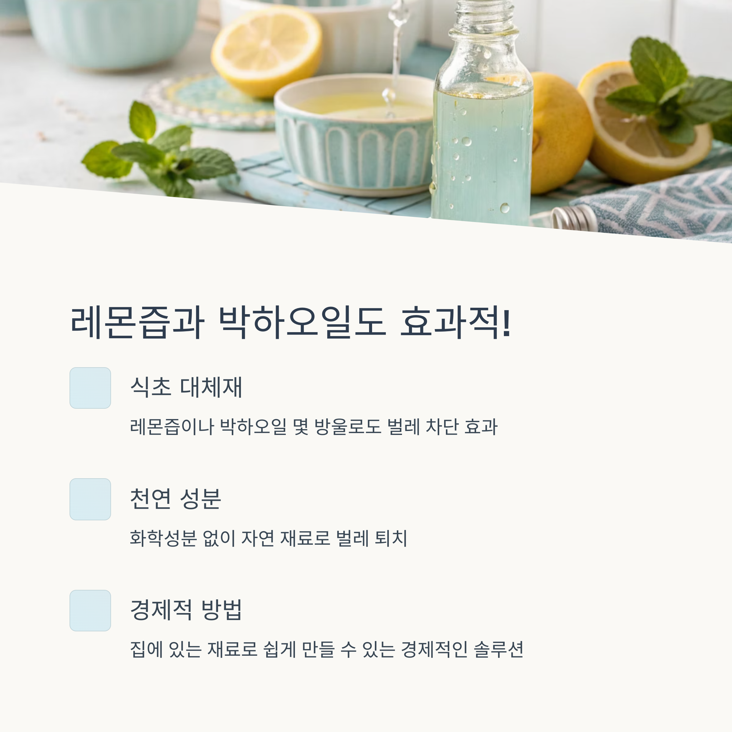 | 식초/레몬즙 | 벌레 퇴치용 천연성분 |